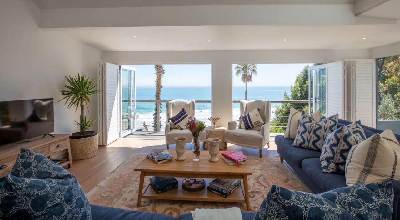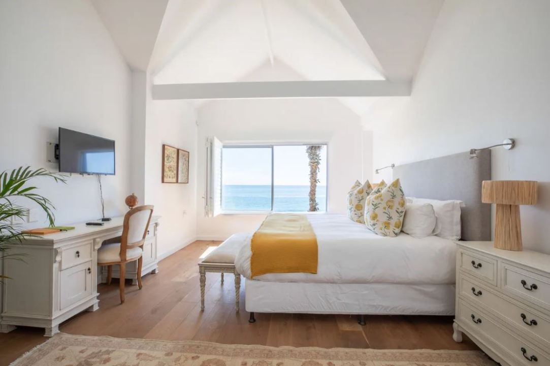 Be taken aback by the breathtaking ocean views and sounds of crashing waves. Exposed beams, blue and white decor, and wooden finishes make this the ultimate beach escape.