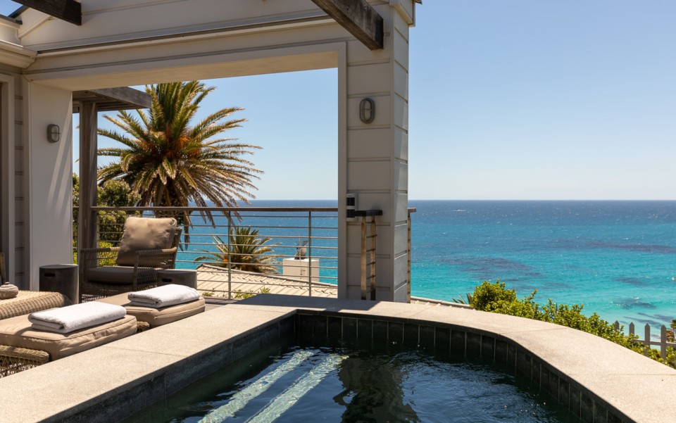 An experience at Bungalow 39, overlooking Cliftons 3rd Beach is undoubtedly one to write home about. Watch the sea and sky melt together, with glass stacking doors and windows flooding the interior with sensational cape coastal views. Step onto the softest white sandy beach, enclosed by turquoise waves, boulders and coastal vegetation. Your lavishly appointed beach bungalow is a rare find, ideal for guests who appreciate privacy, relaxation and beauty. Offering 4 luxurious bedrooms, an outside splash pool, and an added plus is that it’s easily accessible from Victoria Road, with very few stairs.