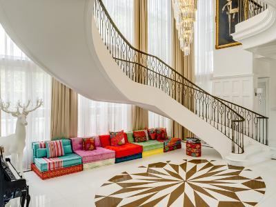 The manor offers generous living spaces designed for comfort and entertaining, with elegant décor and refined finishes throughout.