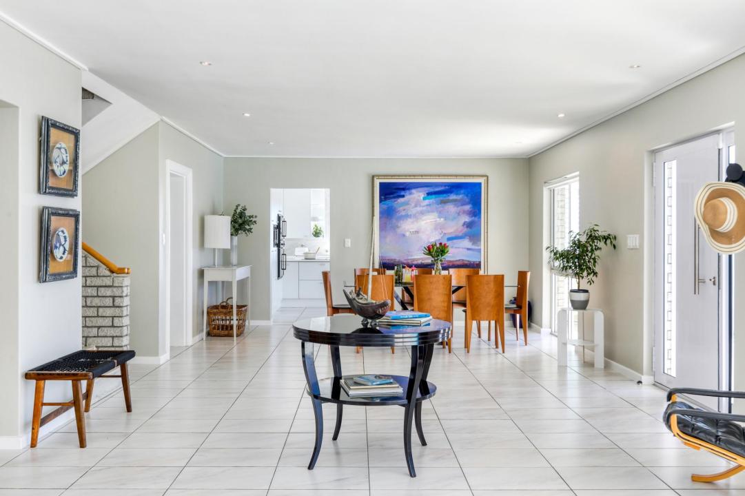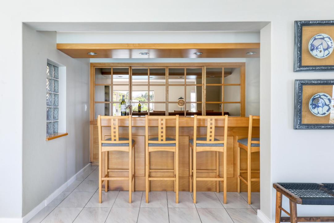 The open-plan living and dining area flows seamlessly onto the sun-drenched pool deck, where sweeping 180-degree views set the tone for lazy afternoons and sunset gatherings. A fully fitted kitchen, complete with Nespresso machine, breakfast nook, and modern appliances, makes dining in both effortless and enjoyable.
