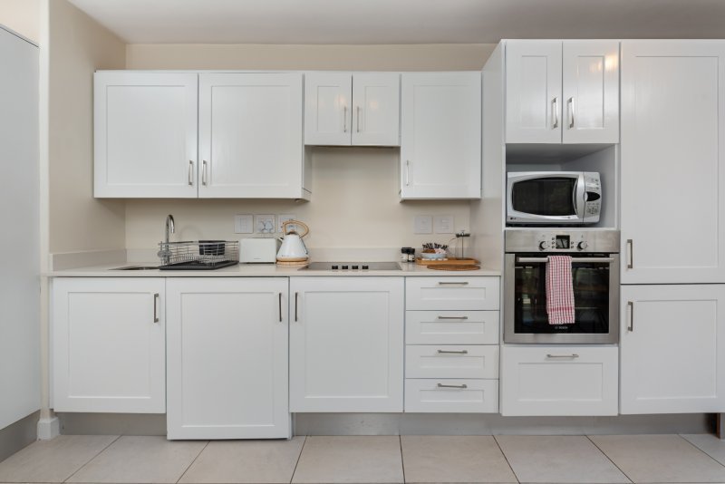Located on the top floor of a modern, secure block, the apartment features expansive windows that fill the interiors with natural light and leafy views. The open-plan living area combines a fully equipped kitchen, dining space, and lounge for comfortable cooking, dining, and relaxation.