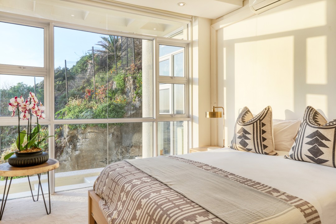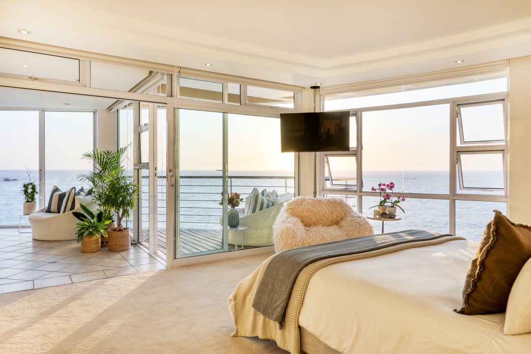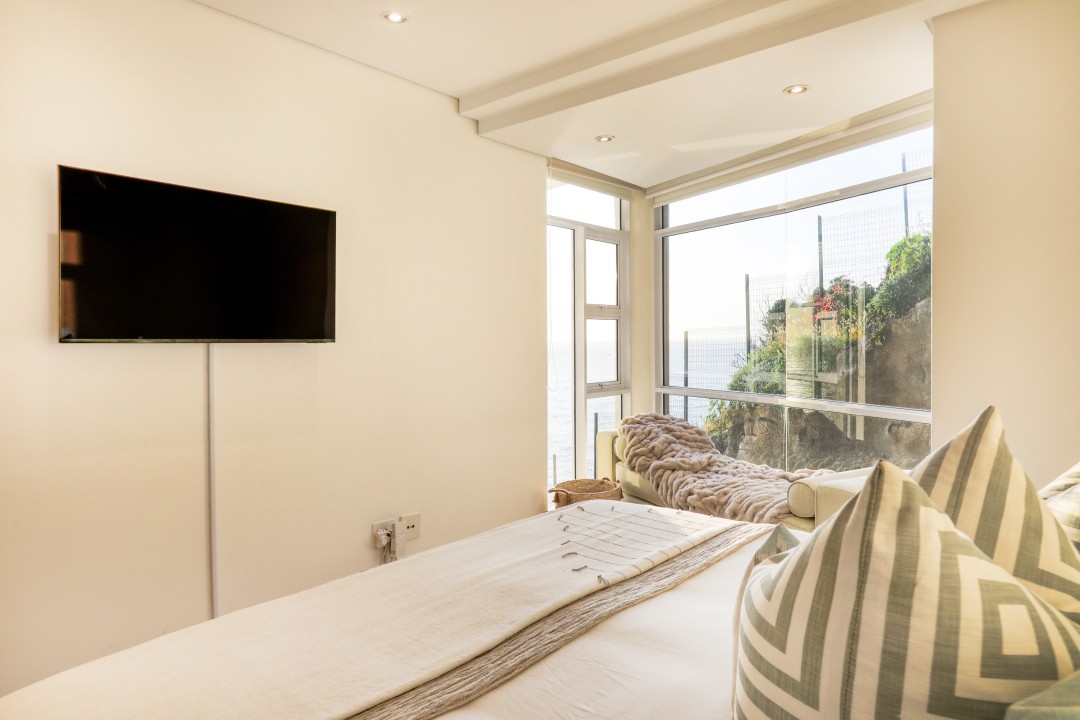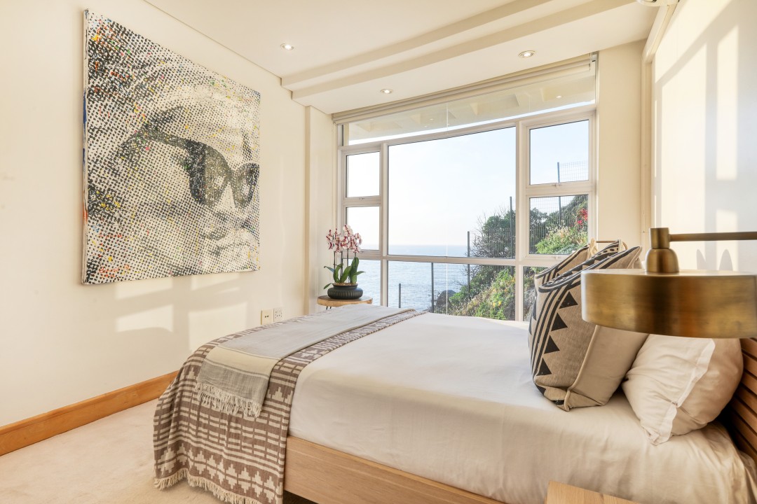 The block has a communal swimming pool, direct access to the beach, parking, and 24-hour security. It really is one of a kind with possibly the best views in Cape Town.