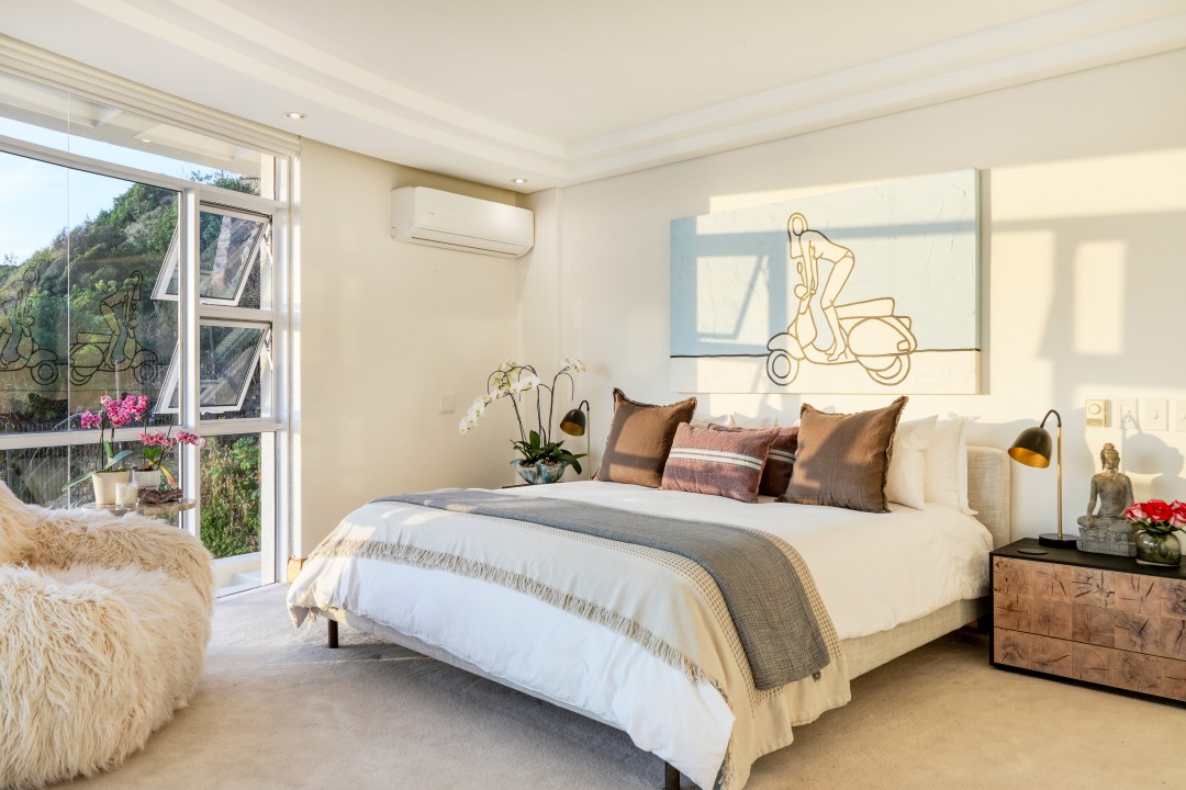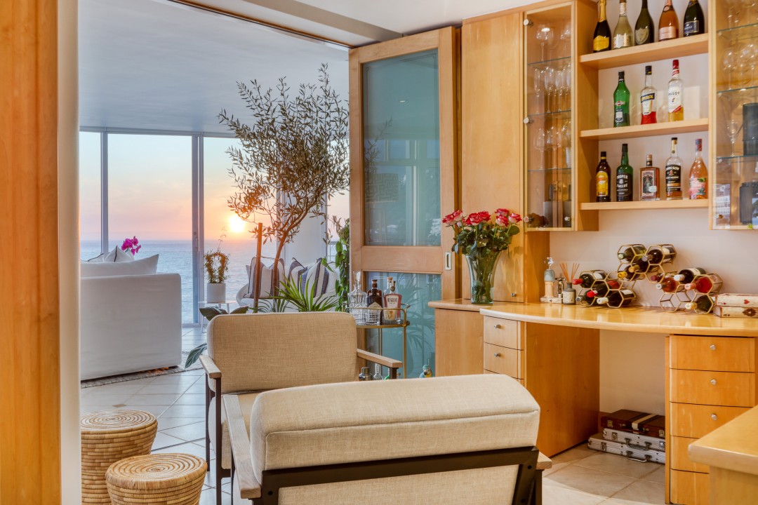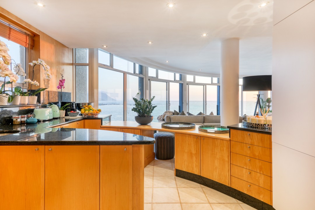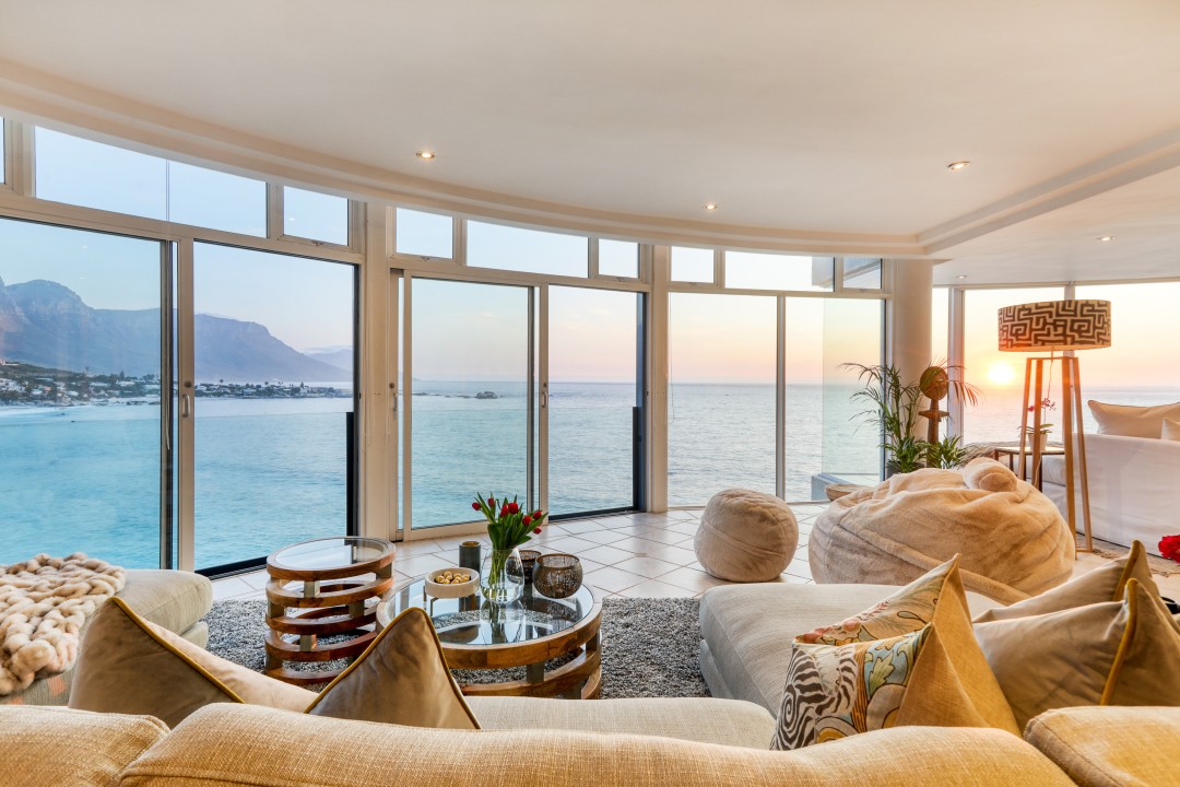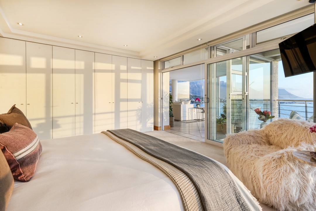 The block has a communal swimming pool, direct access to the beach, parking, and 24-hour security. It really is one of a kind with possibly the best views in Cape Town.
