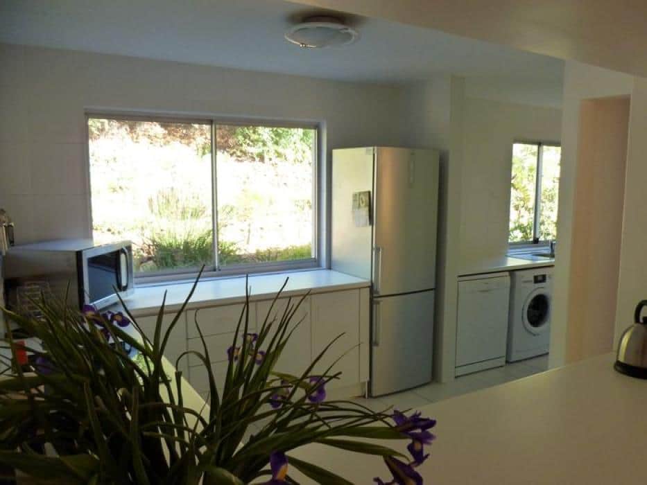 The fully and newly equipped kitchen is open plan to the lounge and dining room all with great ocean view. There is a separate laundry area with washing machine, dryer and dishwasher. The front patio has a table with 8 comfortable dining chairs where you can enjoy evening meals while watching the changing colours of the ocean as the sun sets.