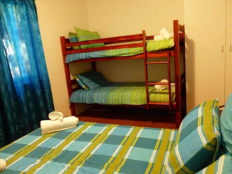 This self catering apartment comprises of 3 bedrooms all with double beds. The 3rd bedroom also has a bunk bed ideal for two. The main bedroom is en-suite with bath and shower and amazing views.