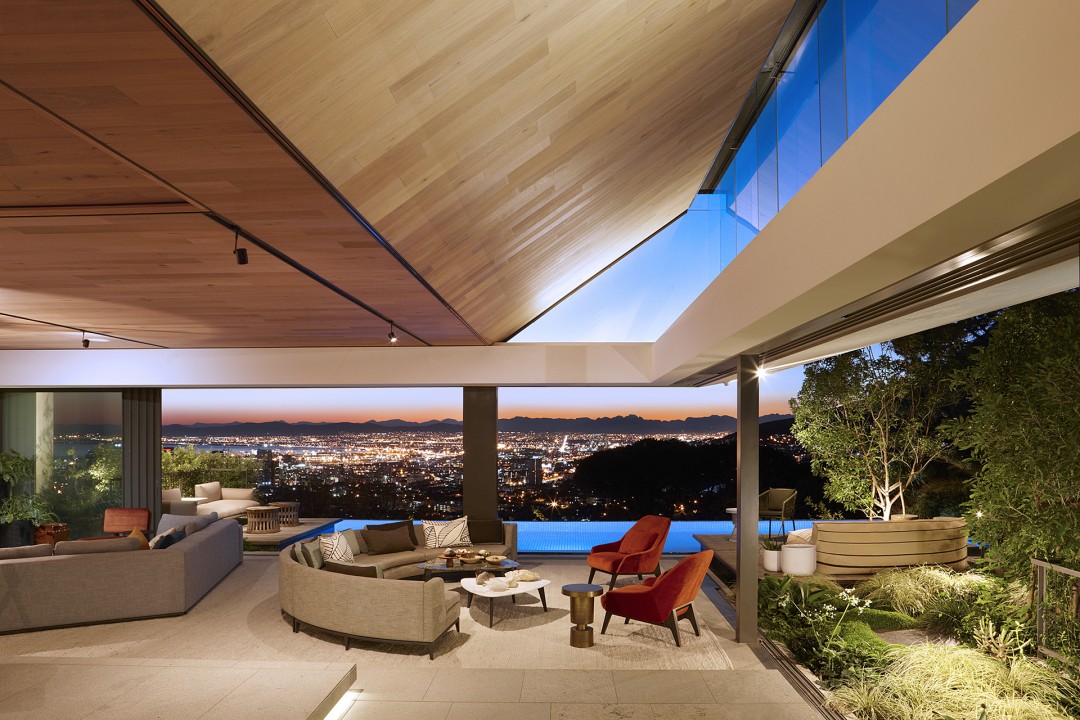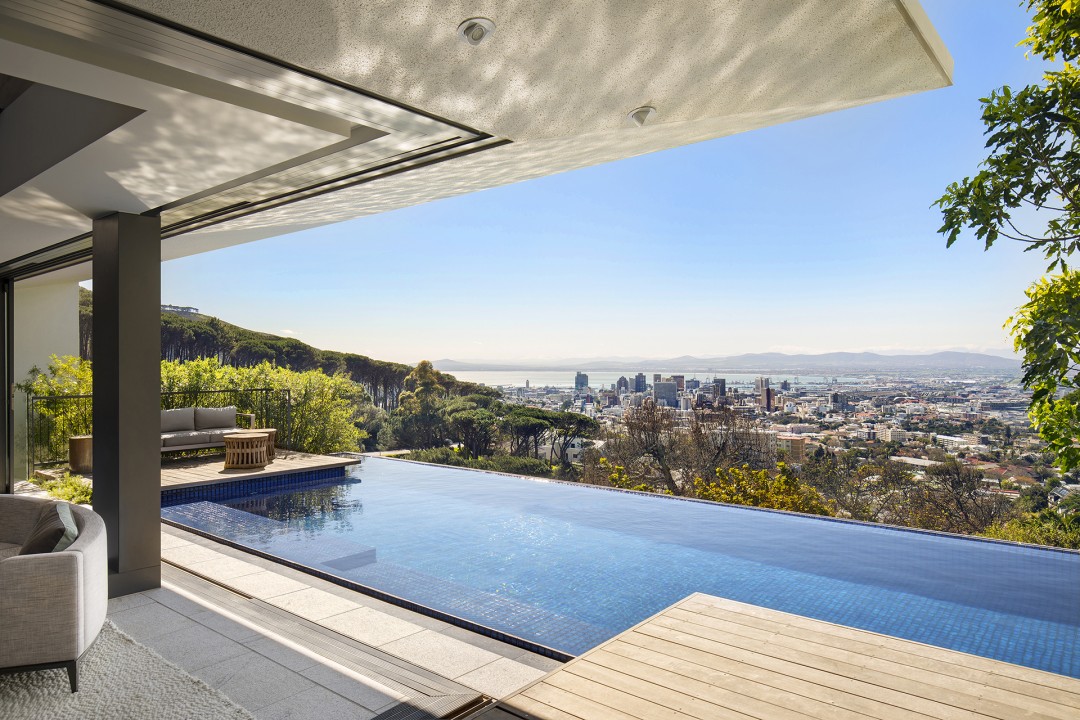 The design aims to frame the views of the city with views of Lion’s Head and Table Mountain to the side and back of the property.