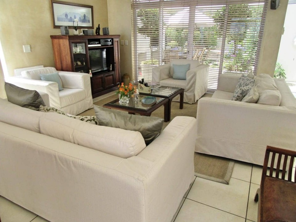 This elegant self-catering villa, situated in a secure complex, boasts 3 bedrooms, 3.5 bathrooms and 3 living rooms.