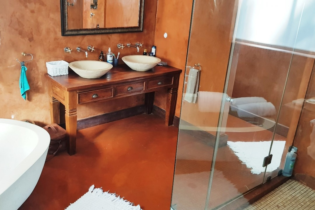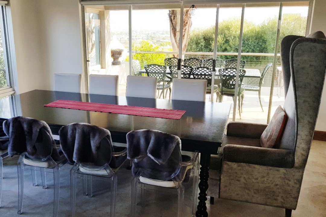 Casa Del Palmera is situated in Central Langebaan.  It is a brisk walk from almost everything,  including central town with all its restaurants, shops and the beach.  This property is built on several levels.  There are x2 ensuite bedrooms on the ground level.  The kitchen, lounge and entrance are all on the ground level.  The main ensuite bedroom and a informal lounge is situated on the 1st floor.  Both the ground and first floors have amazing views of Langebaan and the Lagoon.  The house is ideal for a large group or family.  The house is also equipped with both indoor and outdoor built in braai areas.  The large double garage is available for guests to use.