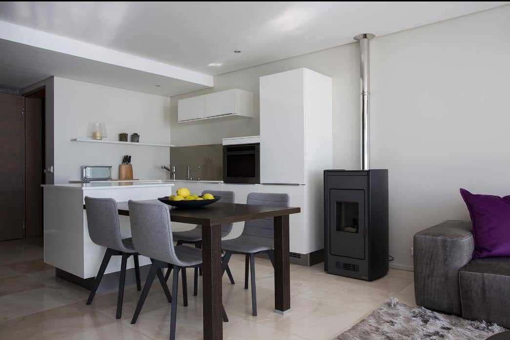 - Underfloor heating and freestanding pellet fireplace