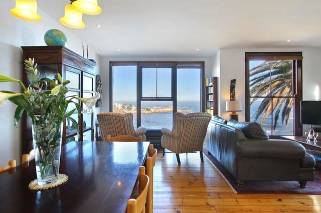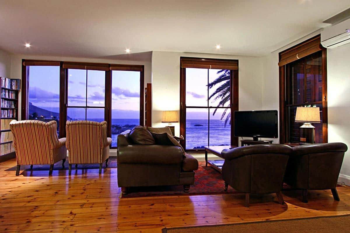 Enjoy the old world charm of this lovingly refurbished colonial home! The Lodge is a spacious three-bedroom holiday apartment providing short term accommodation in Camps Bay, ideal for a group of friends or a family. The Lodge evokes days gone by with its colonial ambiance and comfort and has spectacular views of the Twelve Apostle Mountain range and the Atlantic Ocean. This is one of Camps Bay few remaining original style ocean front villas. Plate glass sash windows look down on the intimate Bakoven beach – a sheltered haven for Cape Town’s most selective sun seekers.