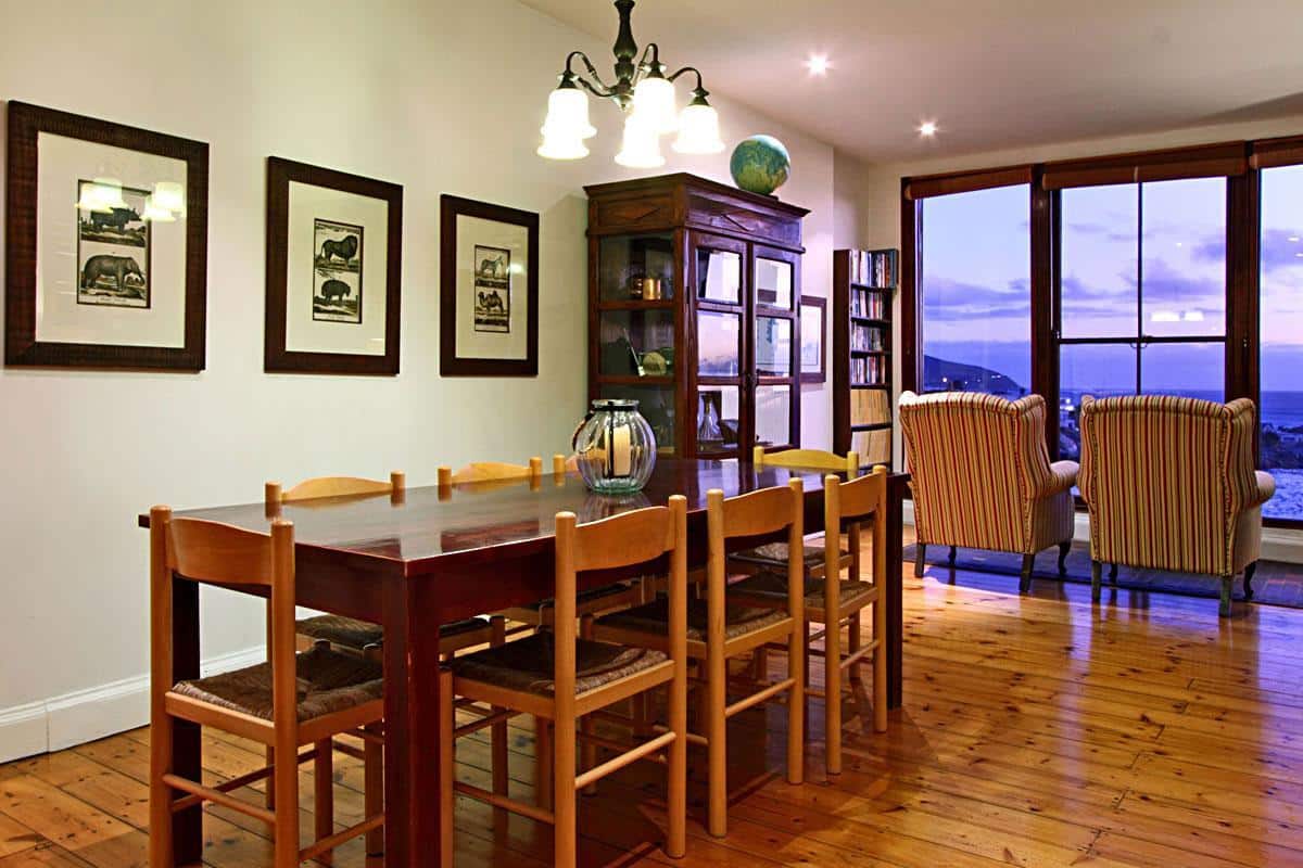 These areas are open plan to each other and have wonderful sea views through the sash windows and comfortable leather couches. DSTV 8 seater dining table