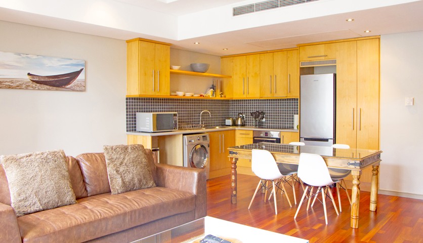 Located in the heart of Cape Town, this chic, brand-new apartment offers a large open-plan lounge, kitchen and dining room.