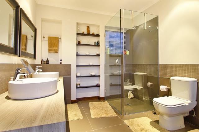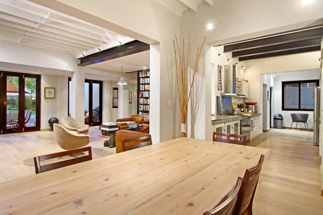 On the ground floor you have a lounge, dining room, kitchen/scullery, a guest toilet, and a room with a bathroom. Access to the garage and to the garden/pool area.