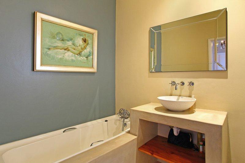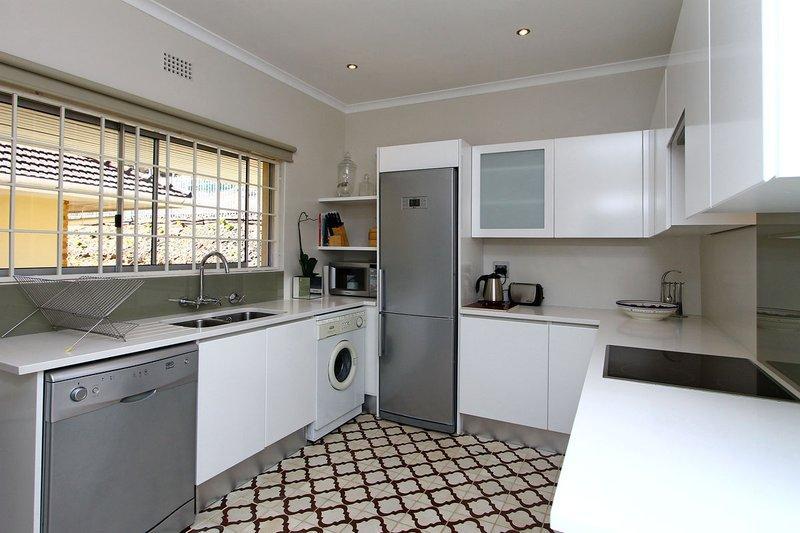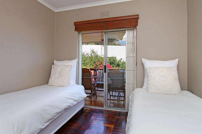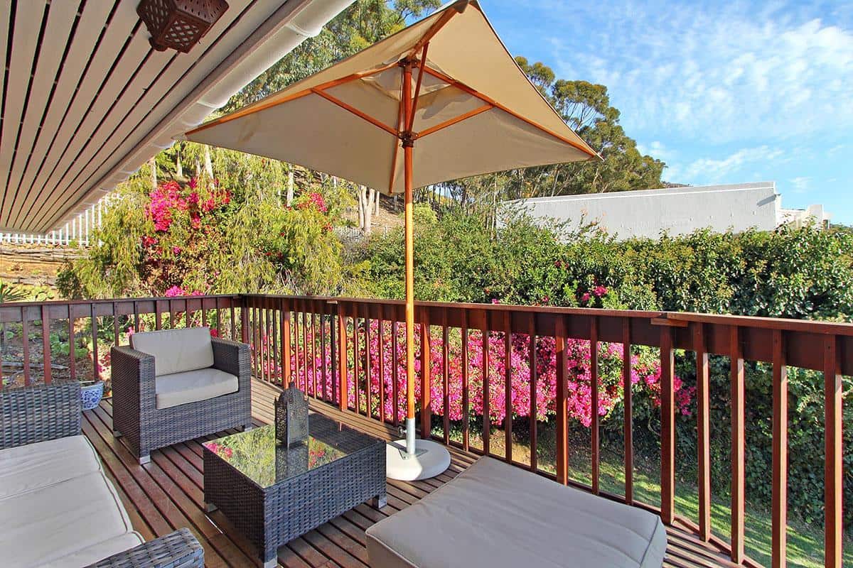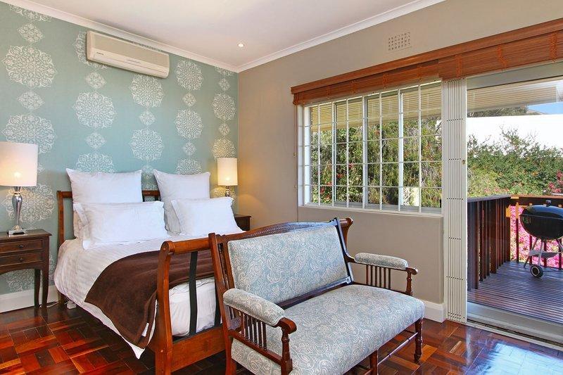 From the deck there are equal servings of sea, suburbia, garden calm and then the mountain slopes. A braai (South African for charcoal grill or barbecue) and outdoor dining table and chairs for elevated entertainment after another day of Cape magic. Sit back with a hot boerewors roll and and cold glass of chenin blanc and let the rest of the world get on with it.