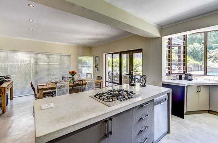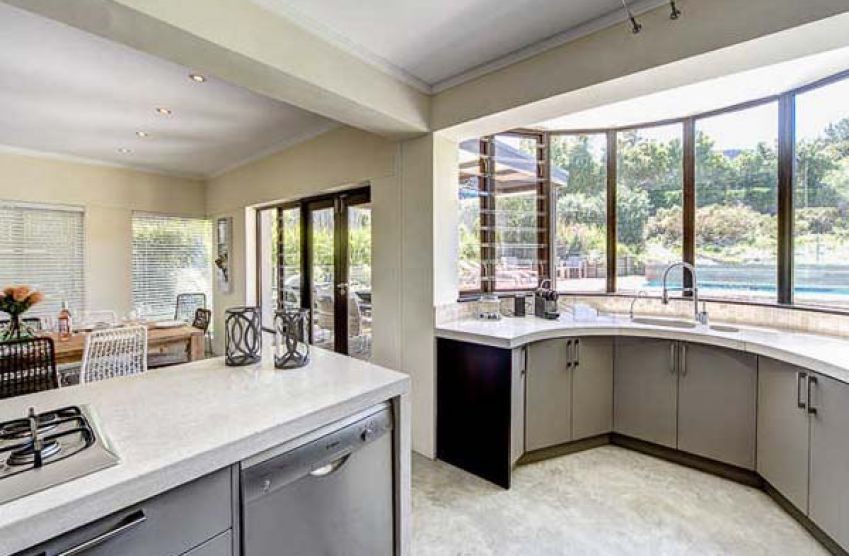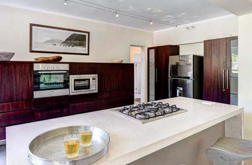 Enjoy great views of the sea from the lounge and the front garden and lovely mountain views from the pool area. The gourmet kitchen is a chef’s delight. Its fully equipped with Cesarstone surfaces and chrome appliances.