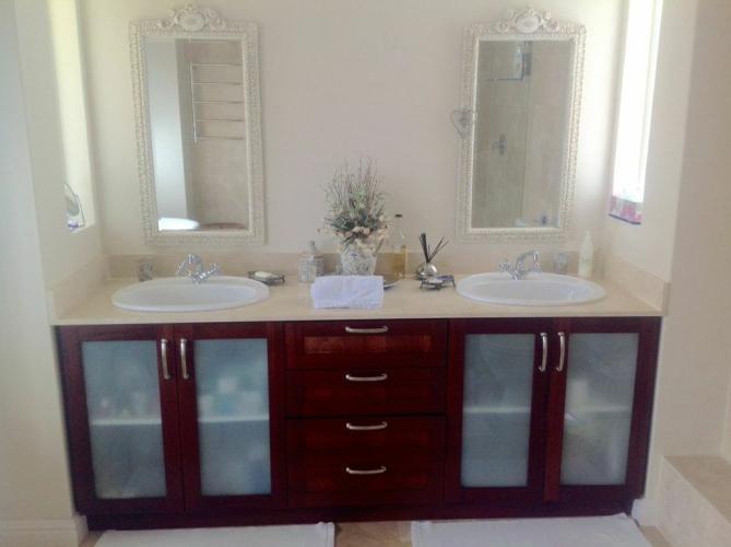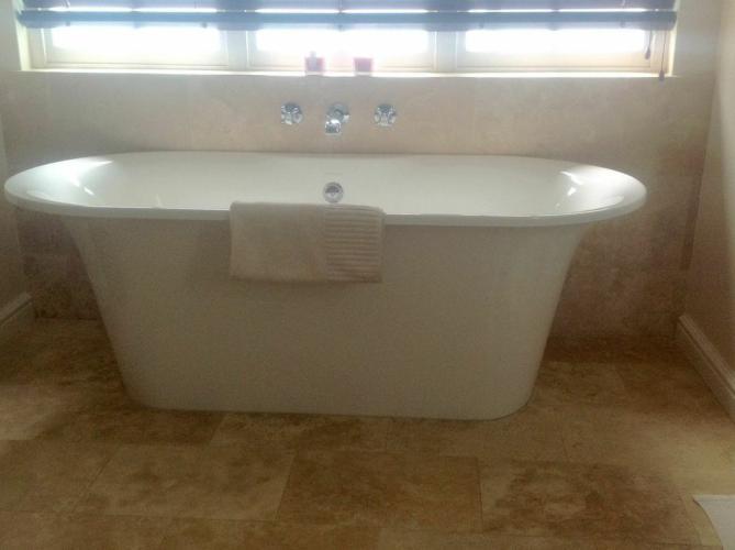The villa comprises of 4 bedrooms. The 2 main bedrooms are en-suite with king size beds. The main bedroom has an extra large king size bed. The 3rd and 4th bedrooms have double beds and share a bathroom with bath and shower.