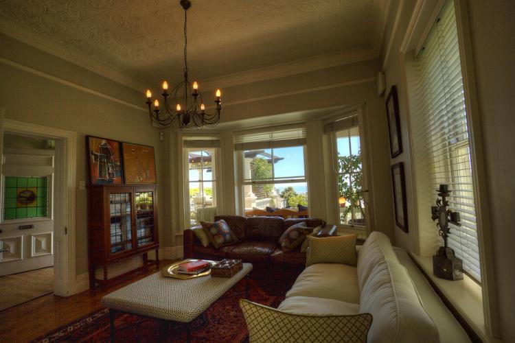 The walkway leading up to the main house has a fresh hedge of jasmine that during the summer time blooms beautifully, greeting you with their sweet, pleasant scent. The entire house has magnificent pressed ceilings and a great easy flowing layout. Master bedroom has a king size bed, a fireplace and en-suite bathroom with shower. This bedroom has a wonderful view of the ocean and city.