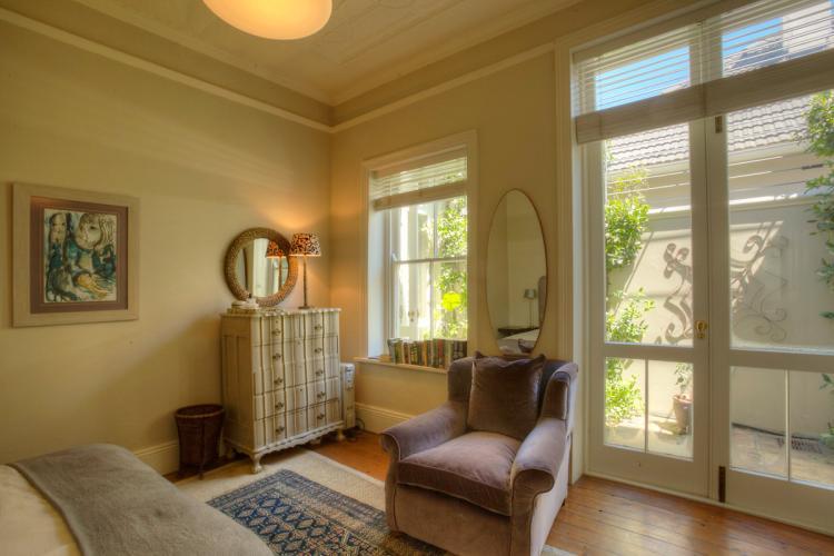 Bedroom 3 has queen size bed and a study desk complete with a bookshelf, computer and phone plus air con and French doors that lead out to a serene little garden.