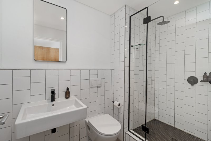 The apartment features a modern bathroom with a spacious walk-in shower, as well as a washing machine for added convenience during longer stays. Unlimited Wi-Fi and backup power during load shedding mean you can relax knowing everything you need is taken care of.