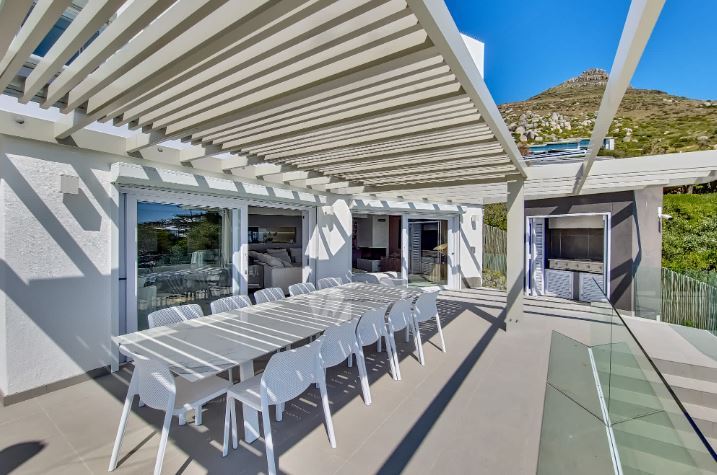 Nestled in the prestigious suburb of Llandudno, Cielo Marr epitomizes modern elegance with breathtaking sea views. This spacious residence features four king bedrooms, each with ensuite bathrooms and direct access to a balcony, ensuring a tranquil retreat. The heart of the home is a beautifully designed living and dining area, perfect for gatherings, complemented by a cozy wood fireplace and easy access to an outdoor deck. A well-equipped kitchen caters to culinary enthusiasts, while the courtyard and pool area, complete with a gas BBQ and sun loungers, invite relaxation. With a private gym and thoughtful amenities such as an alarm, this home provides an ideal escape for rejuvenation and relaxation alike