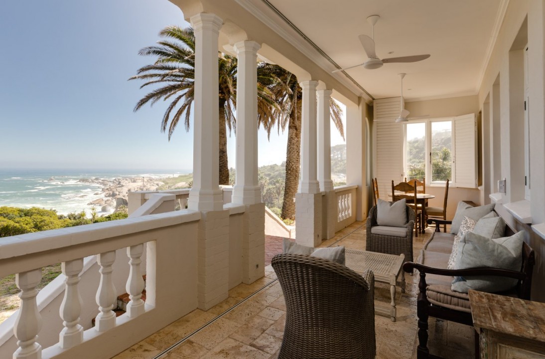 - Long patio leading from dining and lounge areas with expansive sea views