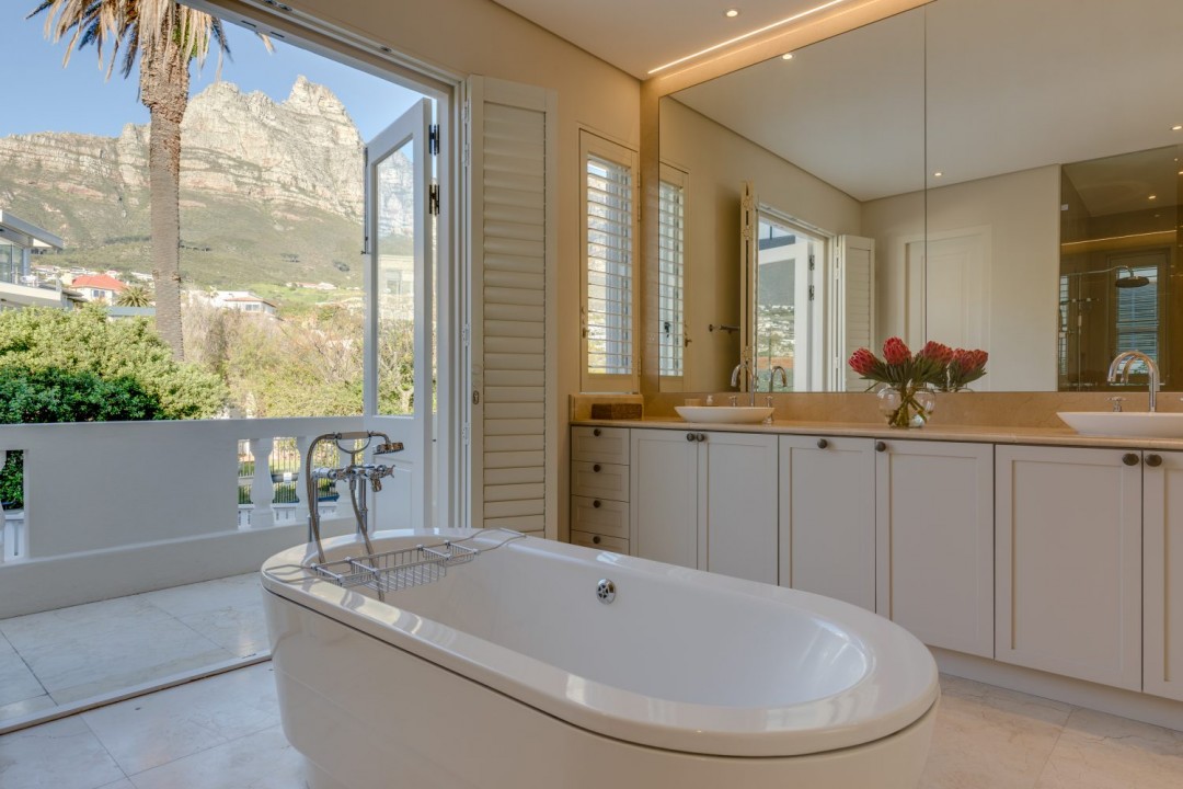 - Bathroom with mountain views and private balcony