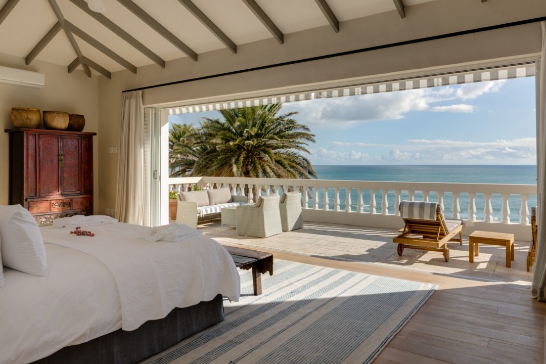 - Glass doors sliding away completely to let the sea be the full view from the bed