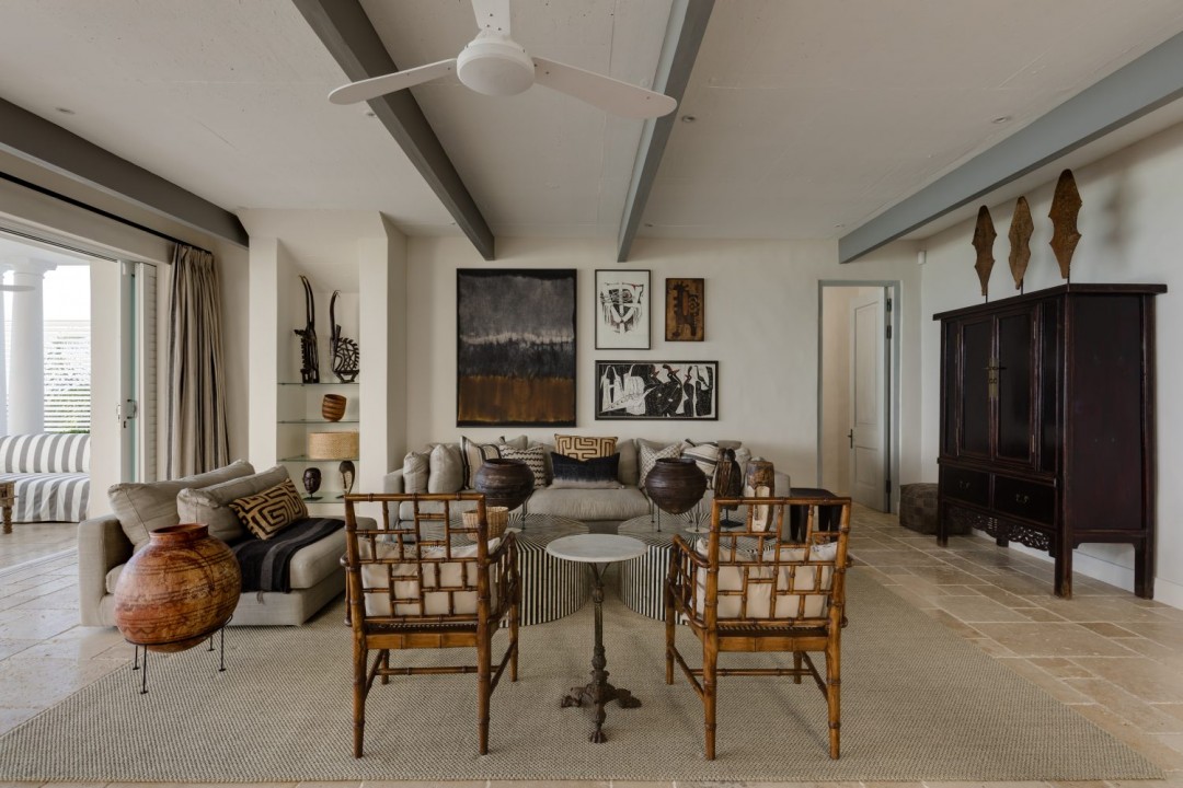 MAIN HOUSE is the original building now declared a national heritage site. Consisting of a large living area, large kitchen, upstairs 2 bedrooms both with large en-suite bathrooms and patios overlooking the beach.