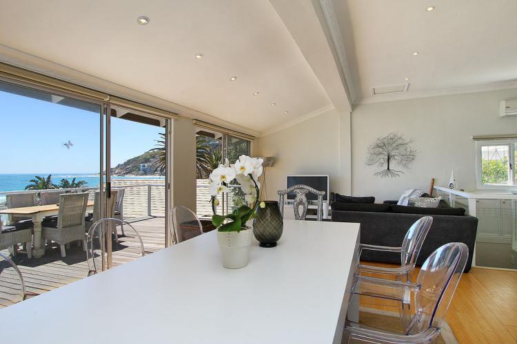 On the upper deck level is an open plan lounge, dining room and kitchen. The dining and lounge area open onto the sun kissed deck with fantastic views over Clifton. It’s a magical setting watching the sun set while sipping chilled champagne and eating oysters. This is what dreams are made of.