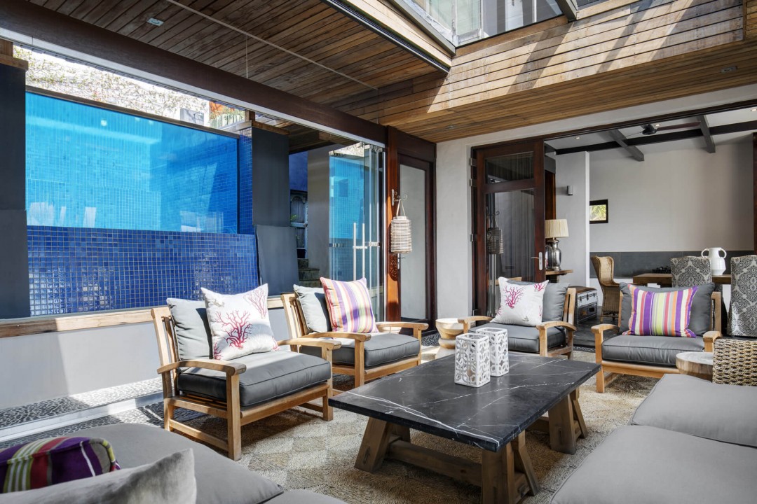 Perched on the slopes of Lion’s Head overlooking the beautiful Clifton bay below is this gorgeous Balinese inspired property.