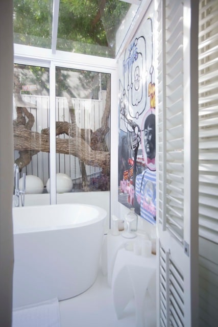 The bungalow consists of 2 full bedrooms, and a loft bedroom. All bedrooms are fitted with 400 thread-count Egyptian Cotton Linen. Both full bedrooms open directly onto the pool deck, with unimpeded views of the beach. (In addition, the living area has a sleeper sofa for one additional person, also with 400 thread-count Egyptian Cotton Linen.)