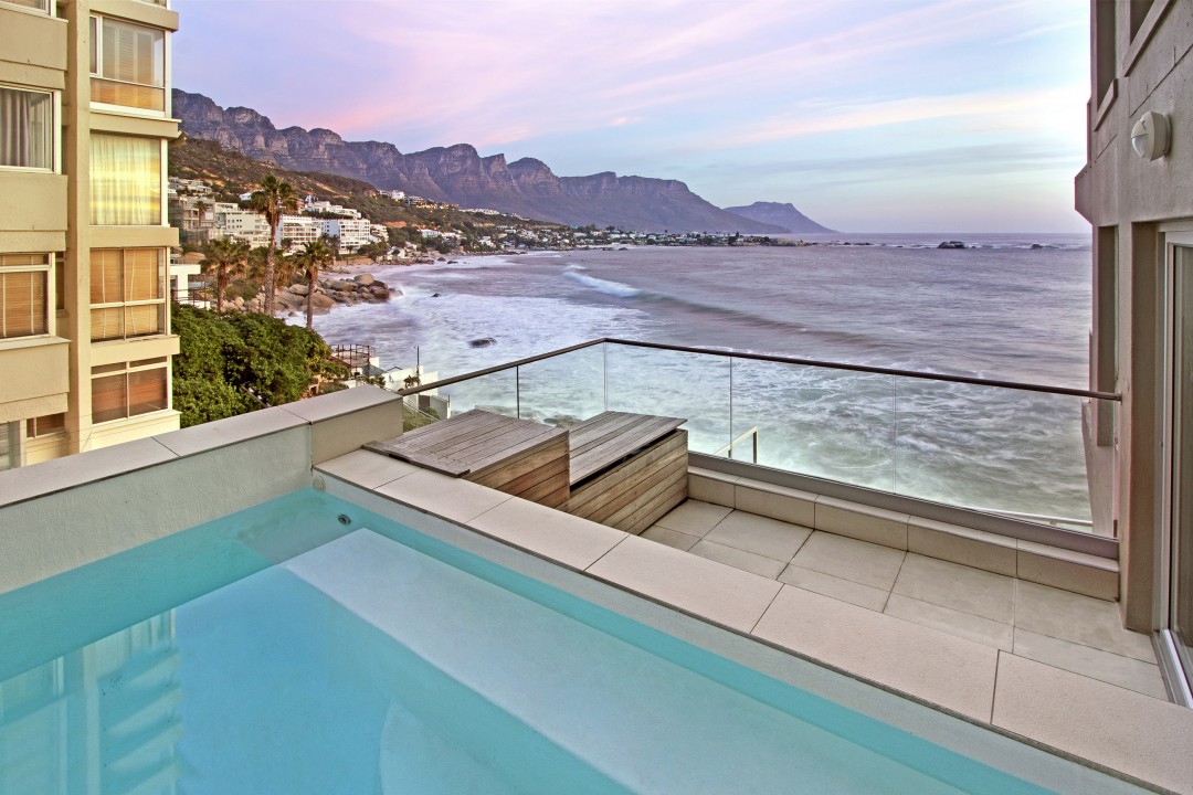 Clifton Views is a lovely, calming three bedroom apartment with magnificent panoramic views sweeping from the ocean to the 12 apostles.The apartment is easily accessed down two short flight of steps and the lift and once you are inside you welcomed by a spacious, airy, relaxing ambience with windows overlooking ocean and beach – fantastic views from every angle! Life is centred around the living area which is open plan and flows freely to the 2 balconies one of which has a small plunge pool.The apartment is simply decorated throughout in soothing tones that reflect its surroundings perfectly.Where better to relax and listen to the waves and watch the magnificent sunsets?