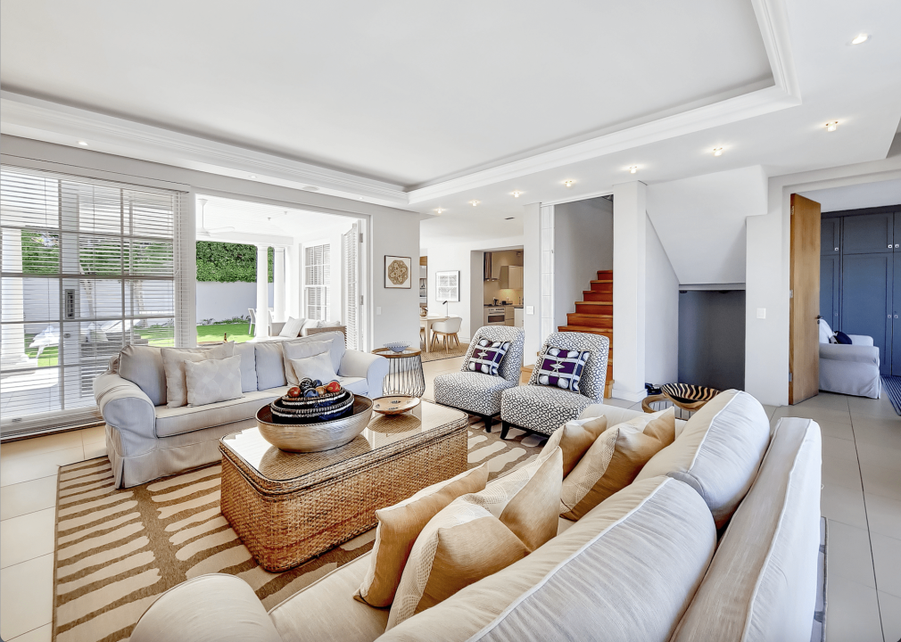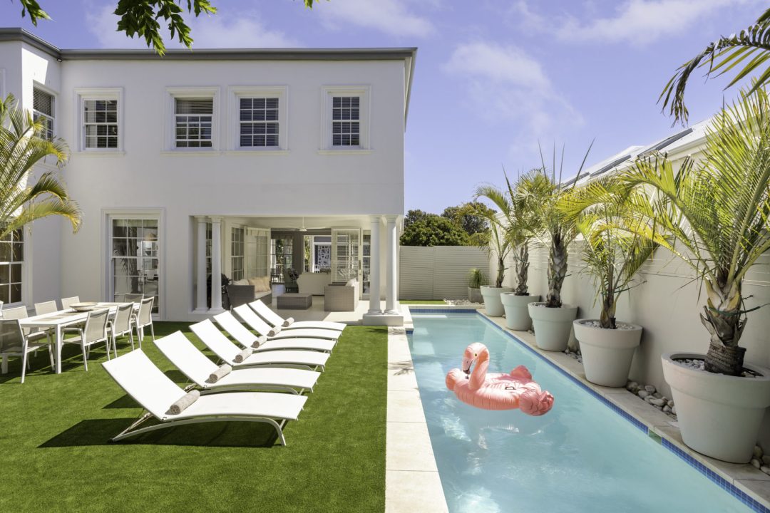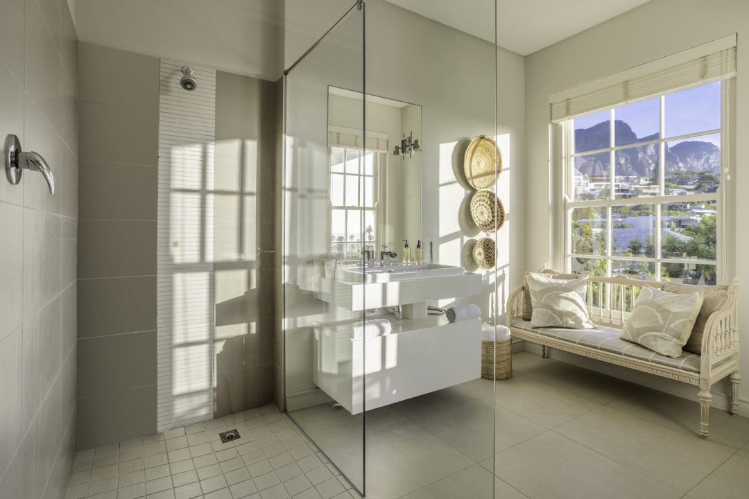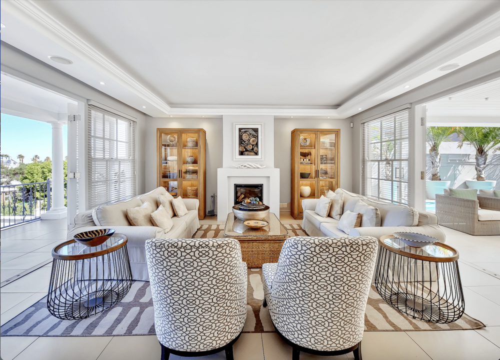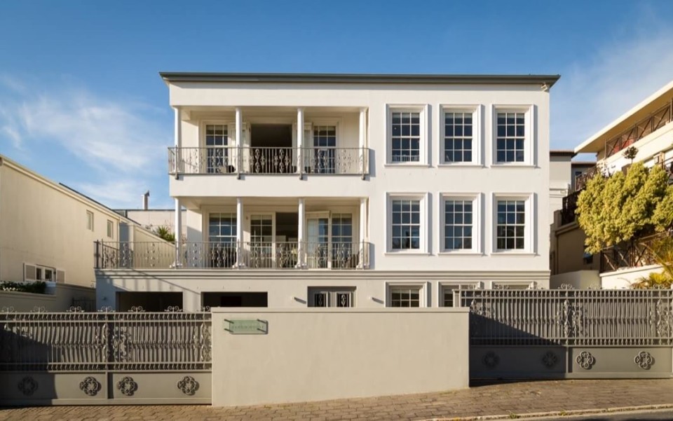 Cloud House – Grand, classic, and chic. This pristine 5-bedroom en-suite, European-style villa is a leisurely stroll away from the famous Camps Bay strip and beach. A villa now powered by solar energy to ensure your comfort at all times! You’ll love the towering views of the Twelve Apostles Mountain range set against magnificent skies and the ocean playground within walking distance. Luxurious leisure living comes alive as your open-plan, triple story residence flows onto sunny outdoor spaces, allowing in all the natural beauty that surrounds you! Featuring a large lap pool which can be heated at an additional charge, next to a generous patio and private outdoor area. 3 Living areas plus a cinema room with large screen and overhead projector. Secure parking for 5 vehicles. All these features make this an ultimate vacation venue, so, so close to the world-famous beach of Camps Bay!