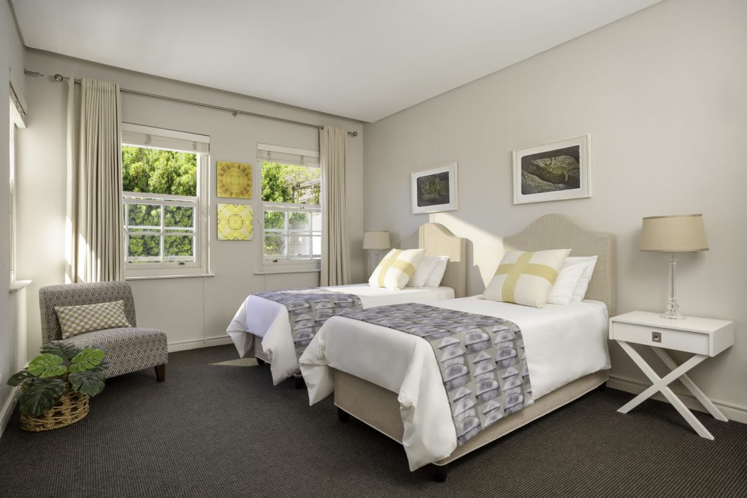 Bedroom 3 with 2 x single beds, can be made up as a king on request, aircon / heater, en-suite with bath and overhead shower and mountain views.