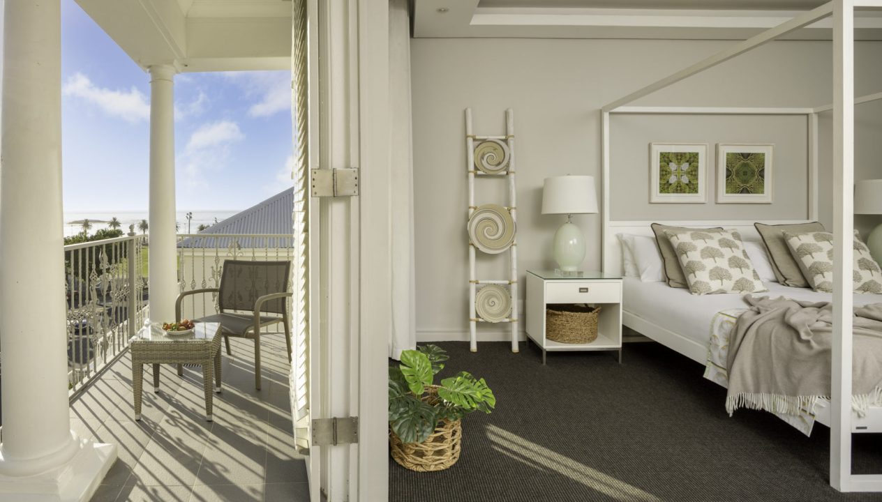 Bedroom 4 with queen size bed, aircon / heater, en-suite with shower and sea and mountain views