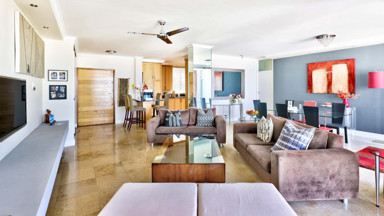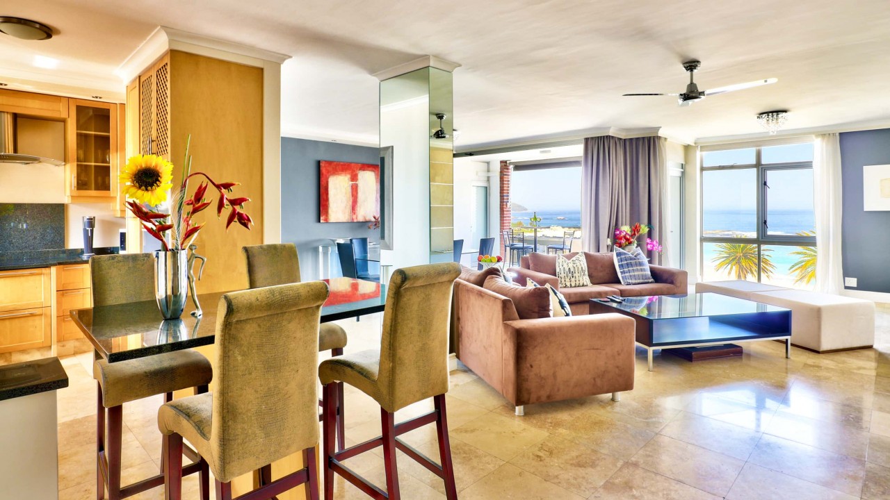 Overlooking the beautiful palm tree-lined Camps Bay Beach and the Atlantic Ocean, Cloud Nine is ideally situated for a luxurious holiday. Boasting spectacular mountain and ocean view from its fifth story local on the beachfront, Cloud Nine is a stylish two-bedroom apartment that offers a convenient and comfortable base for exploring the Mother City.