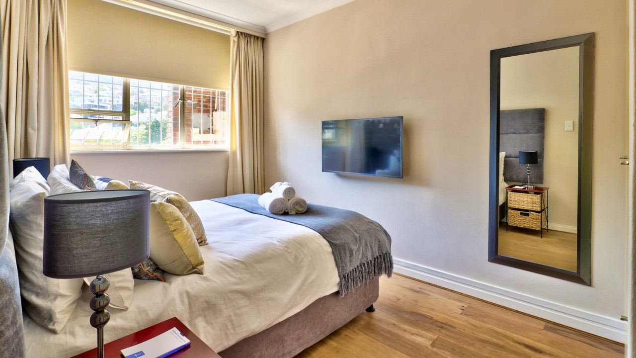 Deluxe amenities include air-conditioning, daily housekeeping, laundry facilities, and secure parking, and the apartment is within a short stroll from a wealth of restaurants, sidewalk cafés, and shops. The affluent suburb of Camps Bay is a short drive away from the V&A Waterfront, the city centre, and the magnificent Table Mountain.