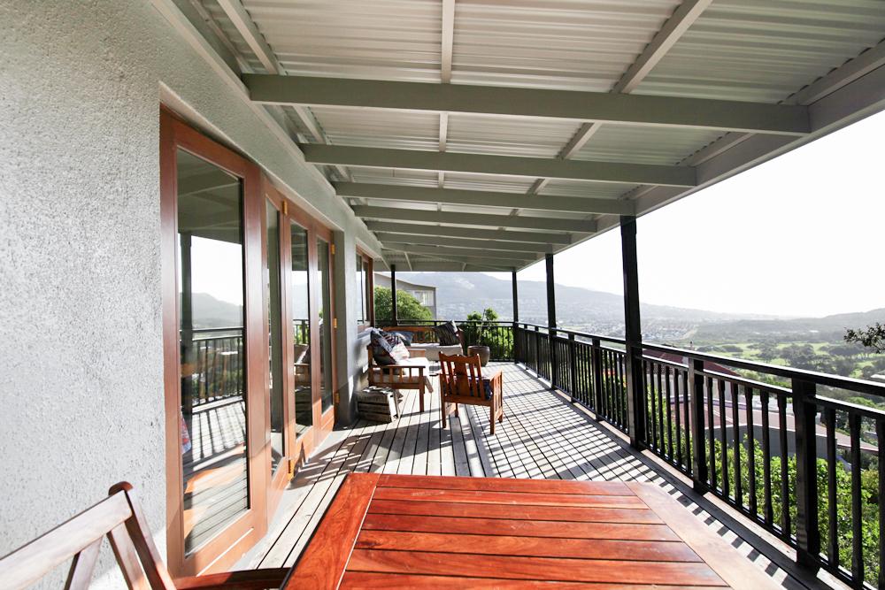 You drive up the hill overlooking the golf course, stop at the garage and then walk up the stairs through the garden where this cosy house awaits you. As you enter there’s a study to your left, down a few steps is the light and sunny lounge, dining room and new kitchen. And obviously the views. Walk out on the deck for relaxing times or Al Fresco meals while you take in the beauty. You don’t need to go anywhere. Braai and have fun.