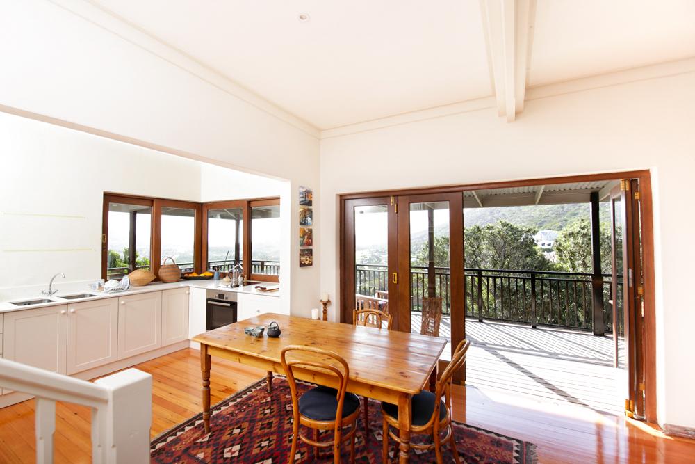 This is a beautifully renovated two bedroom home sleeping 4. The house has a large deck with stunning views from both inside and outside across Clovelly Golf course towards Long Beach Noordhoek. There is a lovely fynbos garden, secluded by trees. The Table Mountain National Park is your back garden with easy access to good walks and nature.