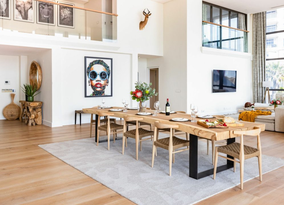 This exquisite double-volume condo exudes sophistication, with expansive interiors, soaring light-filled spaces, and a refined contemporary aesthetic. Dramatic floor-to-ceiling windows bathe the interiors in natural light while showcasing uninterrupted Atlantic vistas that extend endlessly to the horizon. An expansive open-plan design seamlessly unites plush lounges, dual dining areas, and a state-of-the-art kitchen, all flowing effortlessly to the outdoors. All four bedrooms are designed as indulgent private retreats, each boasting an en-suite bathroom, cooling/ heating, and a dedicated workspace for ultimate comfort and privacy. Step onto the balcony, furnished with chic seating and sun loungers — the ultimate setting for a morning coffee, long lazy afternoons, or evening cocktails against the backdrop of a golden sunset. A truly rare find, this home combines luxury, comfort, and unrivalled views in a setting that feels both expansive and intimate.