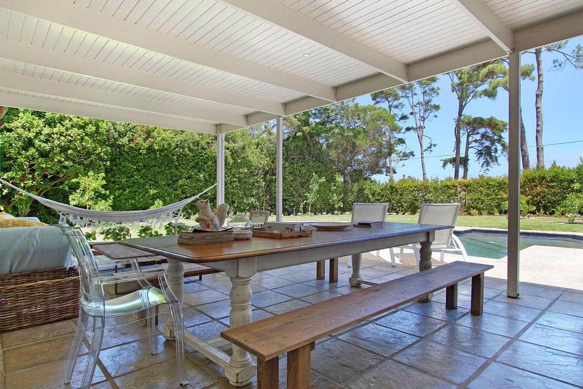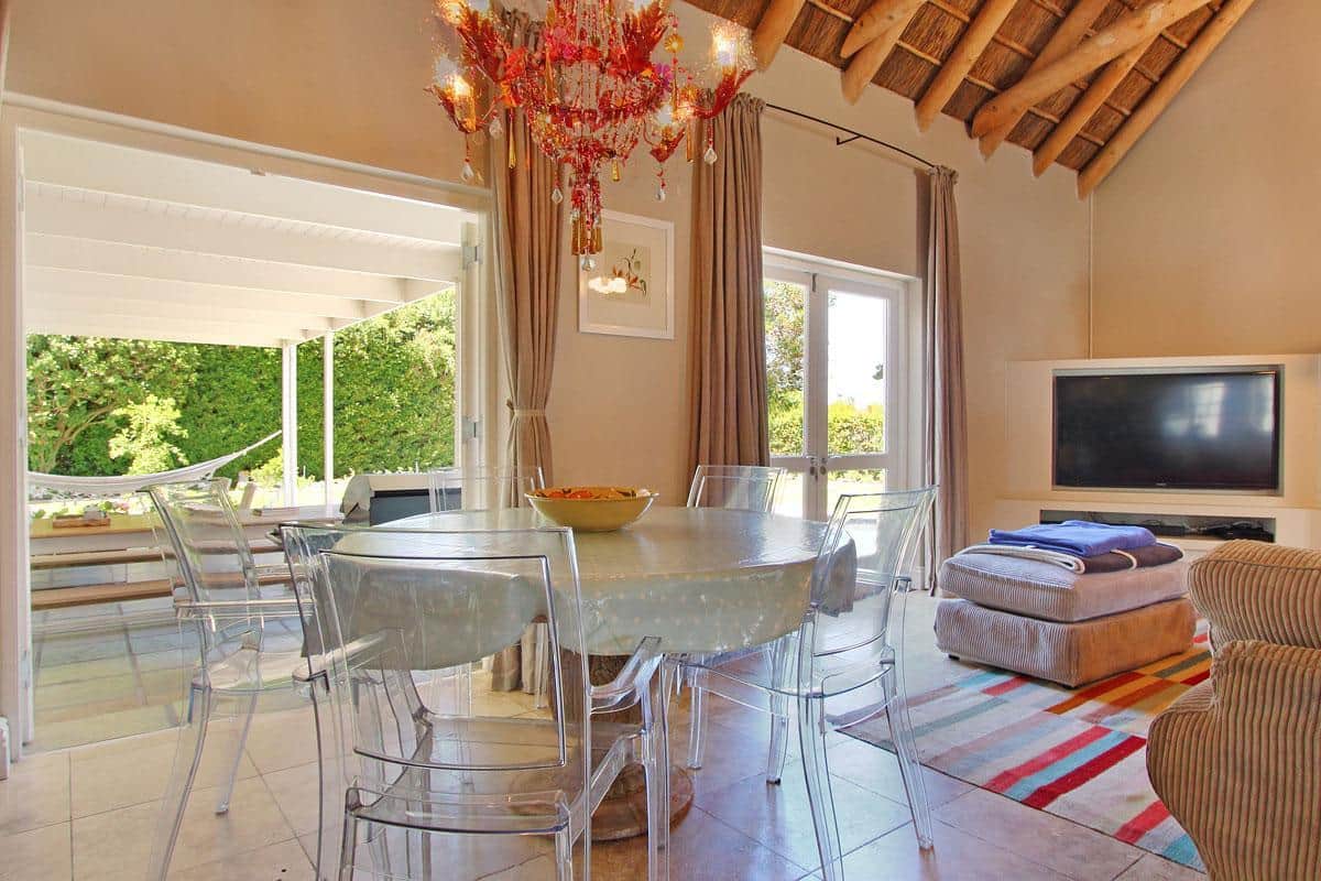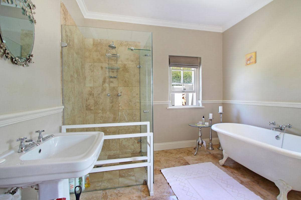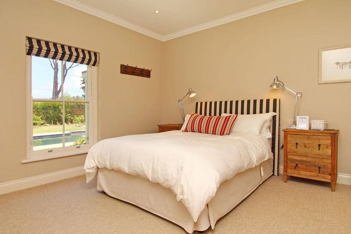 Constantia Valley Walk is a beautiful and luxurious in Upper Constantia. It is an impressive villa with vast proportions and expansive gardens. It comprises of 5 bedrooms with 3 bathrooms all spacious and well appointed. It has great views of the mountains with a superb garden in the front and back of the house. The house focuses on entertaining with a spacious main living/dining area that leads onto the outside terrace with lovely views of the mountains. The pool is well situated in a lovely flat garden. This is a great house for families or groups.