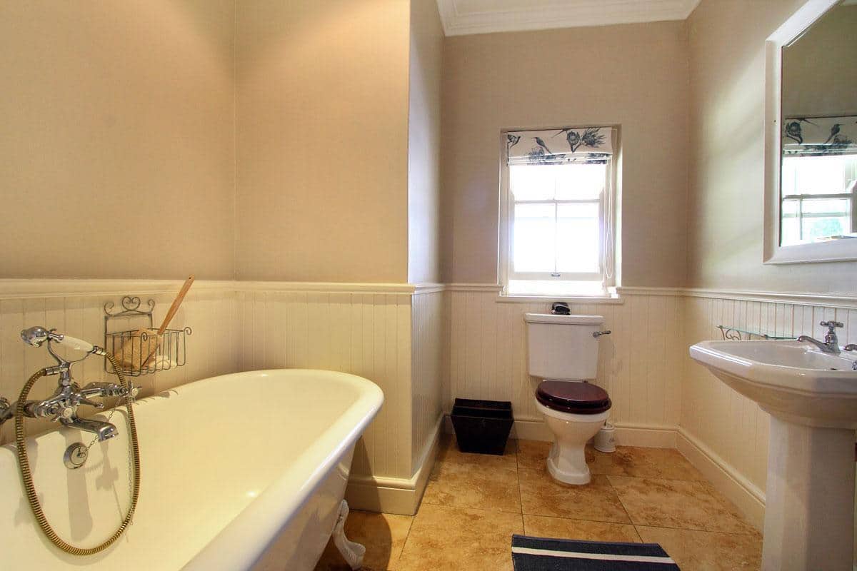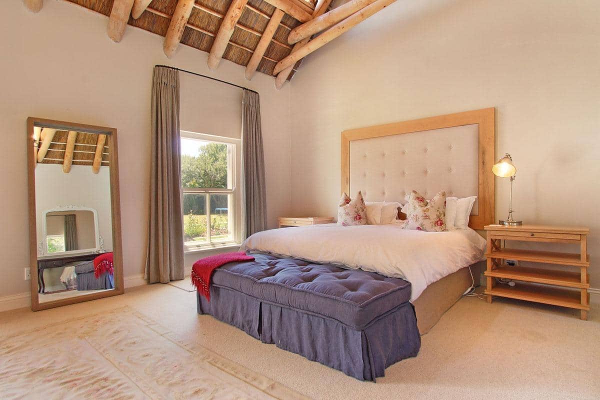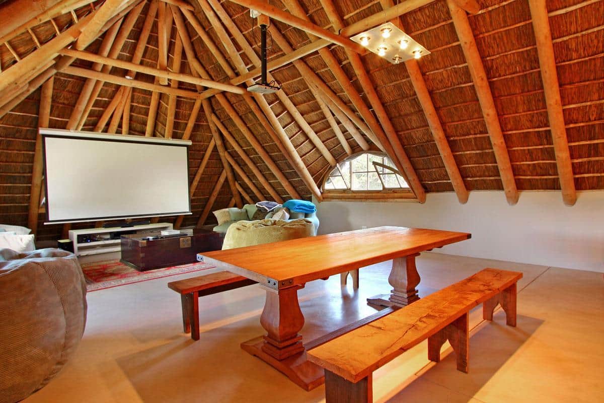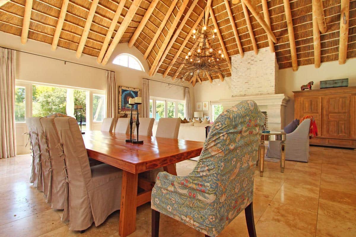 On ground level there you find the main bedroom to the left as you enter. It opens onto the gorgeous garden. It has a separate dressing area and en-suite bathroom. Further down the passage is a study, and then a formal lounge and dining area opening onto the same terrace. A further 3 bedrooms can be found on the south side that share a bathroom and a separate shower room.
