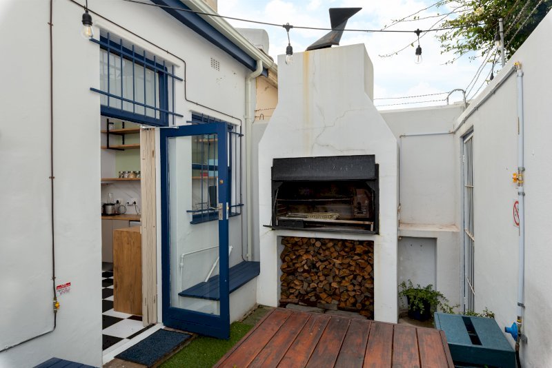 The back courtyard is designed for socialising, with a covered braai and outdoor dining area — perfect for long summer evenings with family and friends.