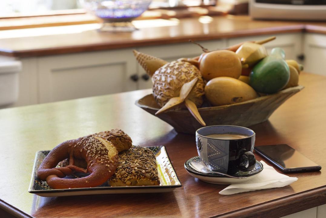 A huge, bright, and airy kitchen has everything needed for easy holiday living and entertaining. State-of-the-art appliances include a gas oven and stove, and dishwasher. A scullery houses a fridge/freezer, washing machine, and tumble dryer. A picnic-style table and benches provide a place to enjoy breakfast and easy meals and dark slate tiles keep the kitchen cool. The kitchen has large windows that can be folded back to allow full views of the garden.