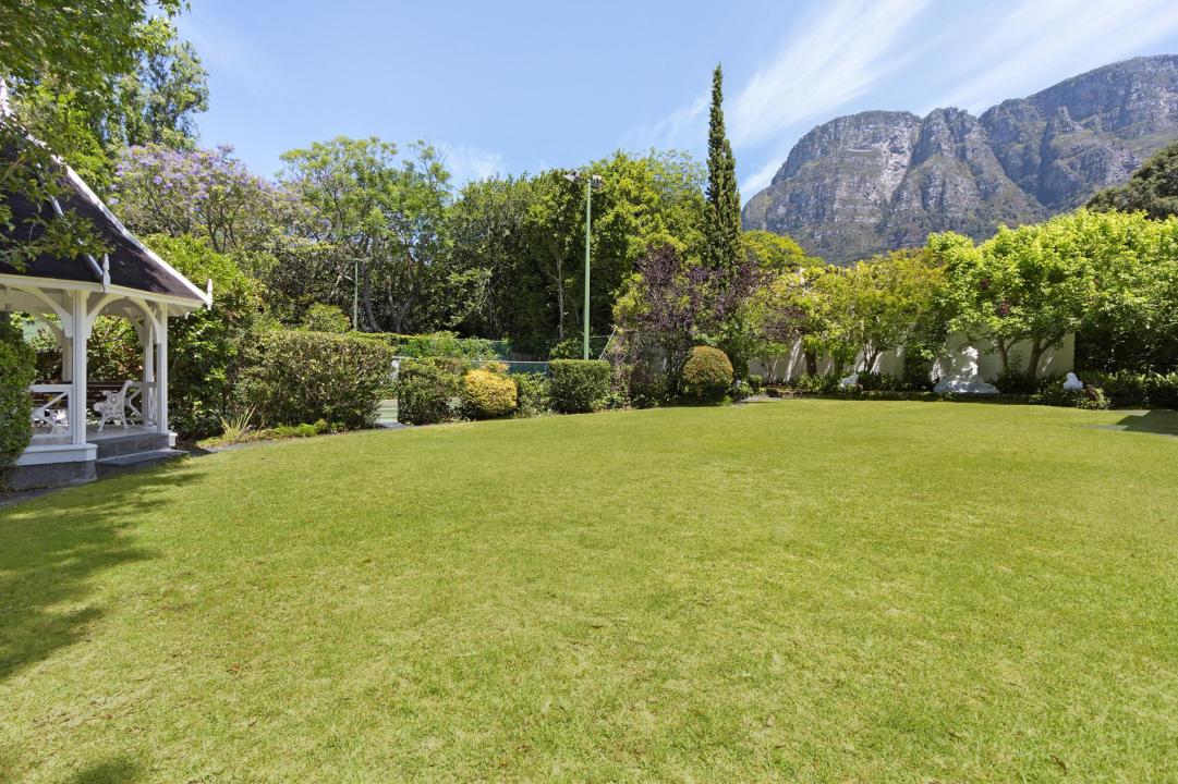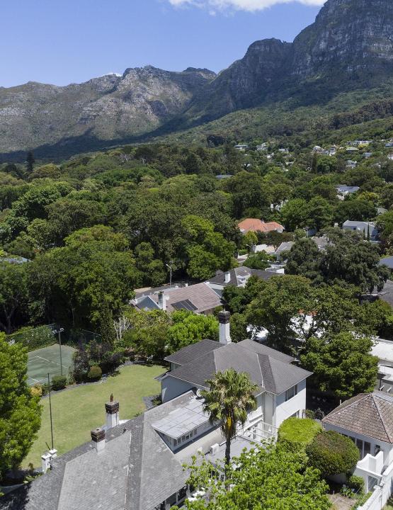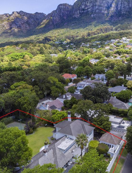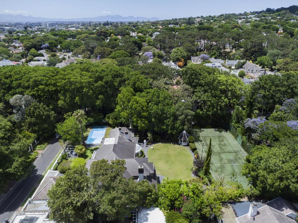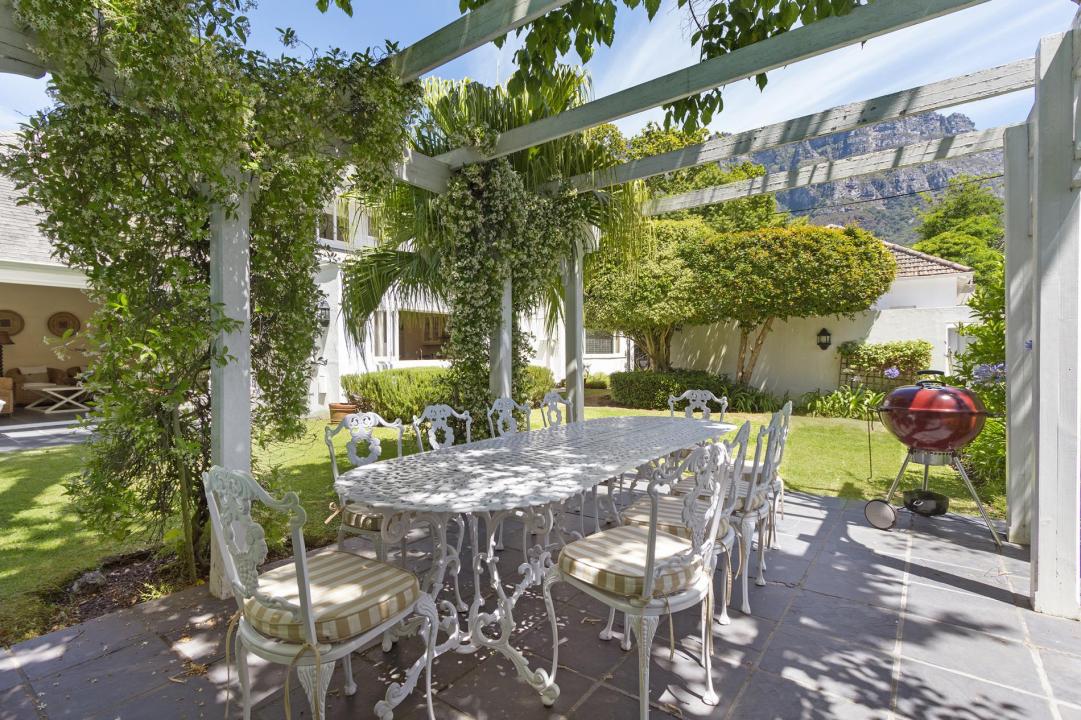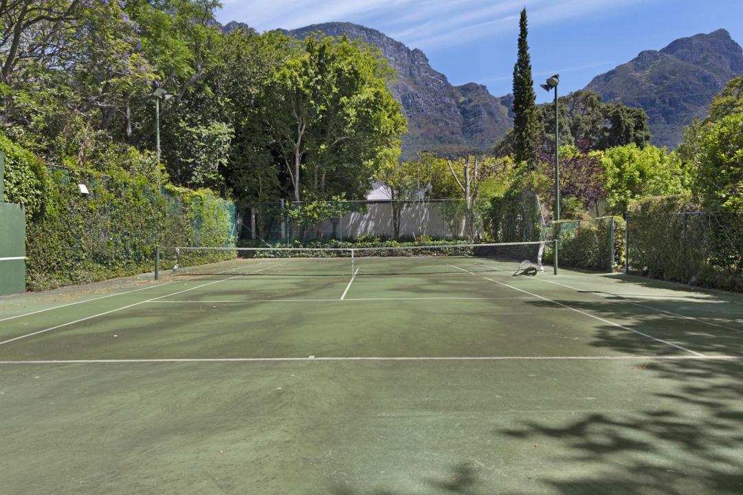 The villa is surrounded by an acre of mature gardens with stunning views of Table Mountain. There is a floodlit tennis court and a large heated swimming pool. A large pergola near the pool covers an eight-seater dining table and chairs for alfresco dining, and a smaller pergola in the garden is ideal for relaxing.