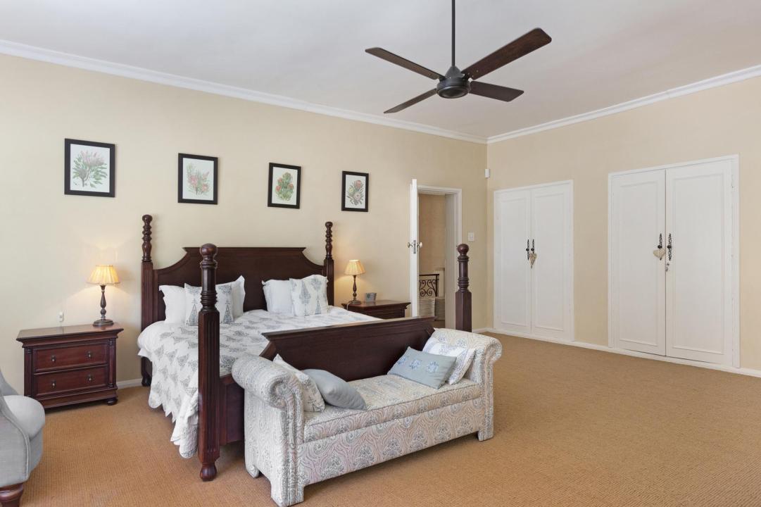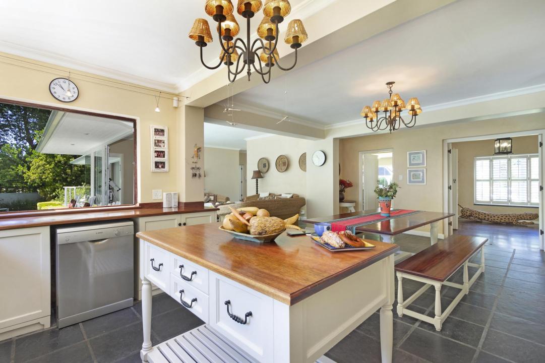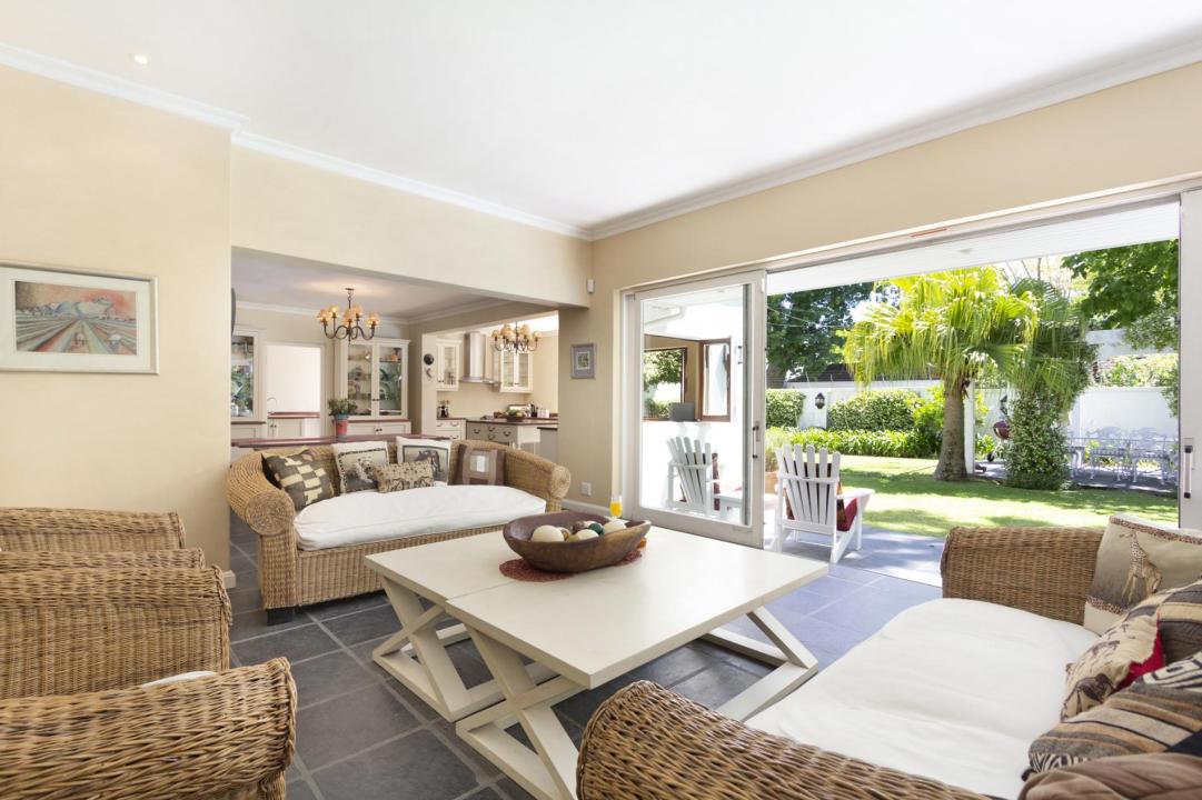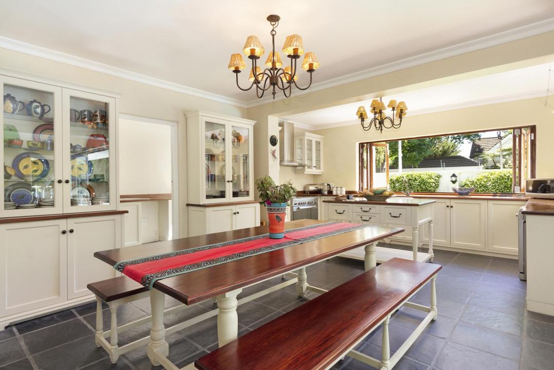 The villa is surrounded by an acre of mature gardens with stunning views of Table Mountain. There is a floodlit tennis court and a large heated swimming pool. A large pergola near the pool covers an eight-seater dining table and chairs for alfresco dining, and a smaller pergola in the garden is ideal for relaxing.