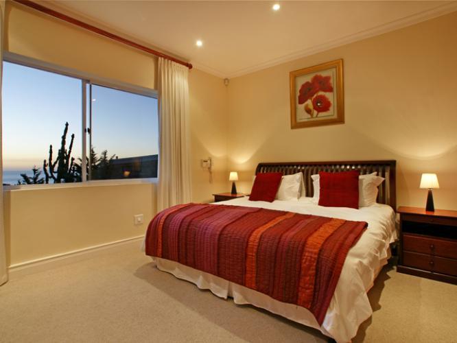 The master bedroom upstairs is a luxurious haven with its king-size bed, beautiful wooden furnishings and sufficient cupboard space. The fine quality curtains open to appealing sea views. An en suite bathroom features heated towel rails and gleaming fittings with shower, toilet and wash basin, as well as a sizeable tub from which to gaze at the breathtaking mountain view while relaxing after a day of shopping and exploring.