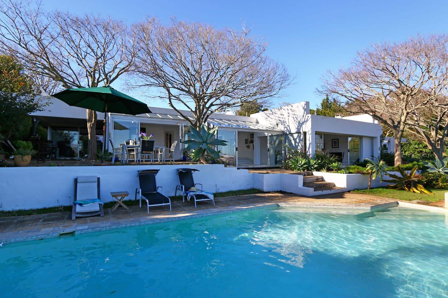 Cycad House, named after the bountiful amount of cycads (some are over 500 years old) located on the property, is close to all amenities in the popular Cape Town Suburb of Constantia. This 5 bedroom property is ideal for a bigger family or group of friends who want to enjoy a relaxing holiday in Cape Town. The home sleeps: 6 adults and 4 kids.