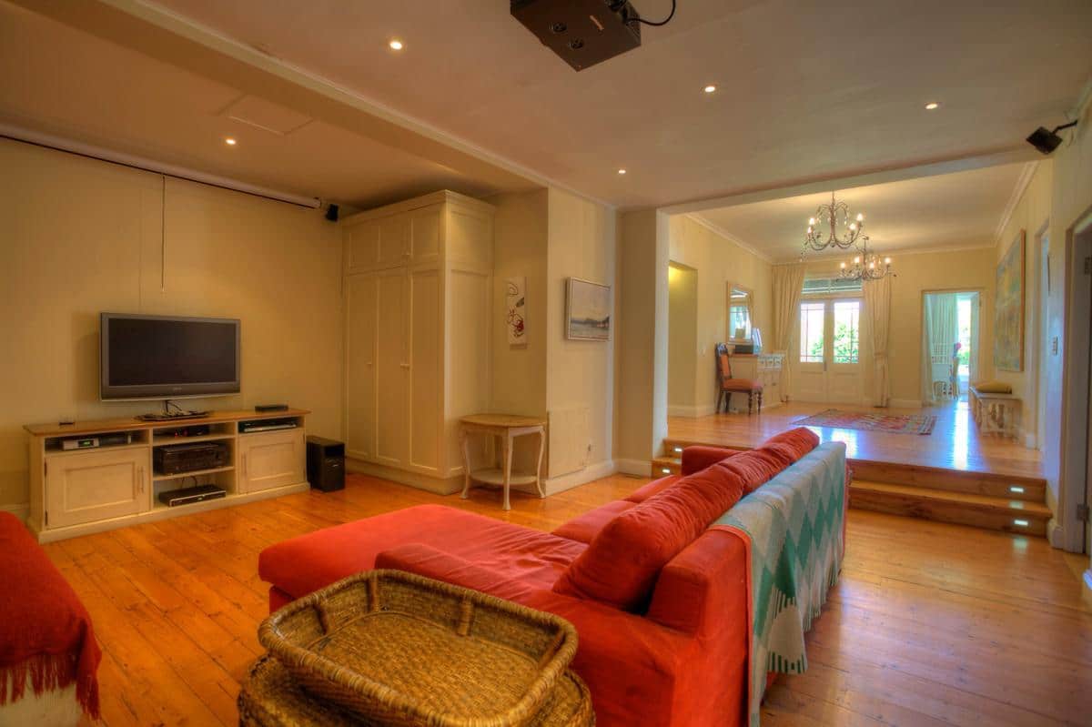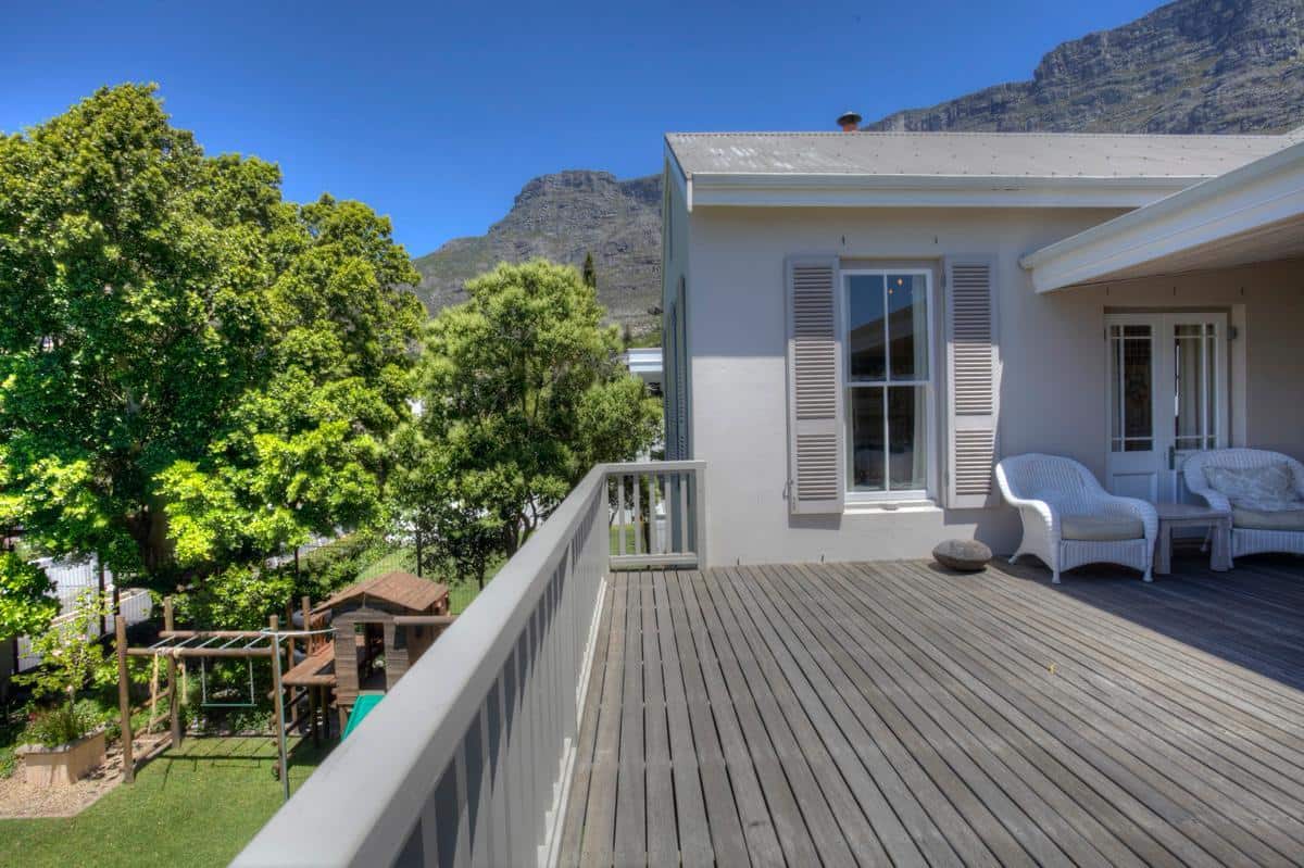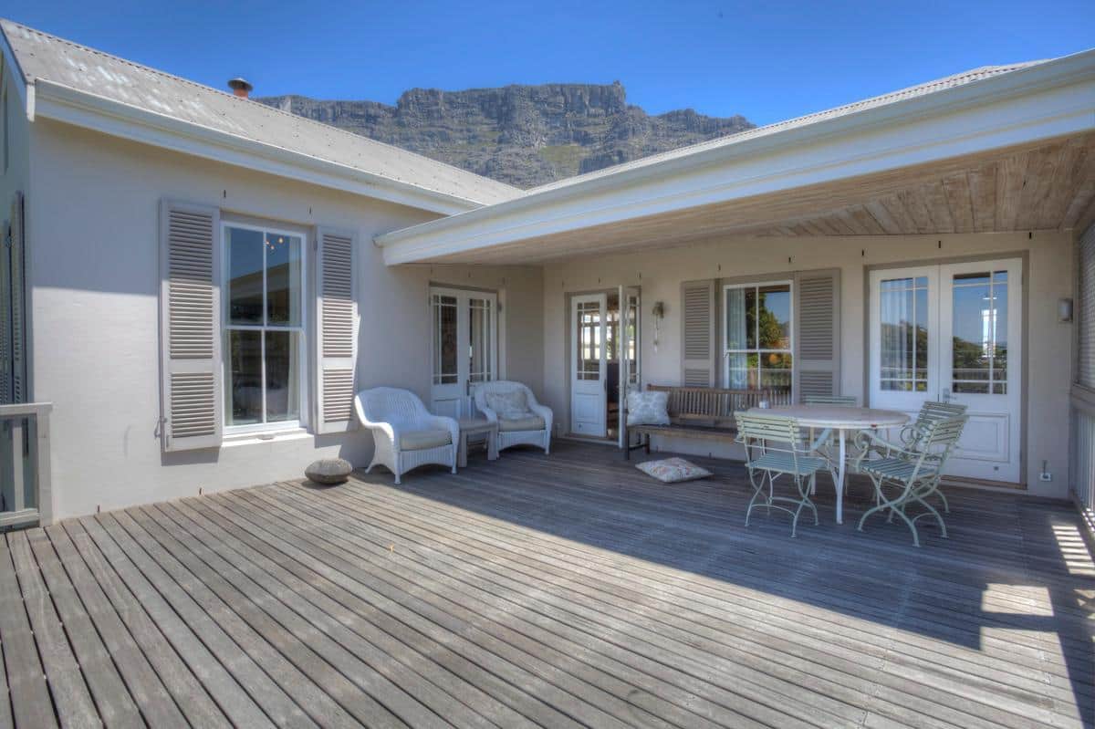 The Danning residence is a modern house in the City Bowl with spectacular views. There is a poolside patio and entertainment area with views of the mountain. There is also a wooden deck to dine on, with views of the harbour and city. There is a ground floor enclosed garden.