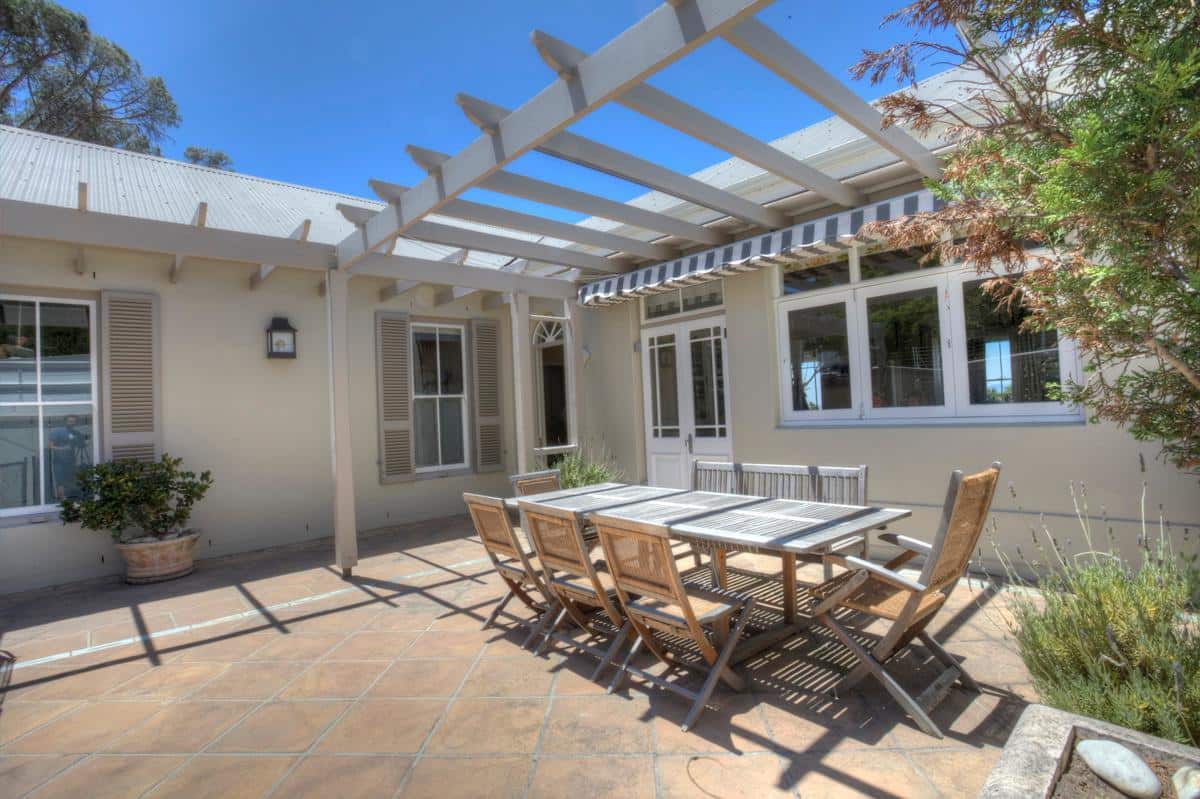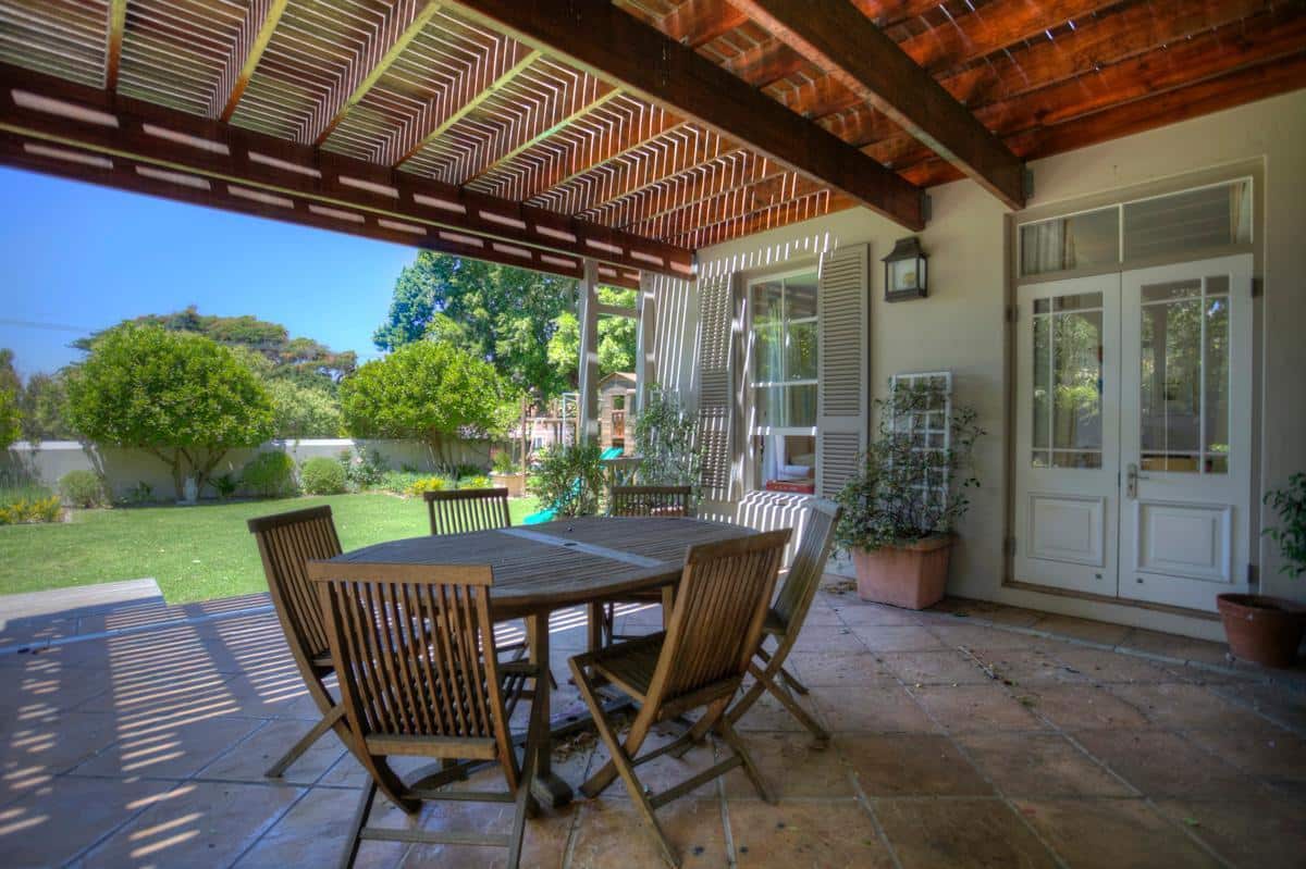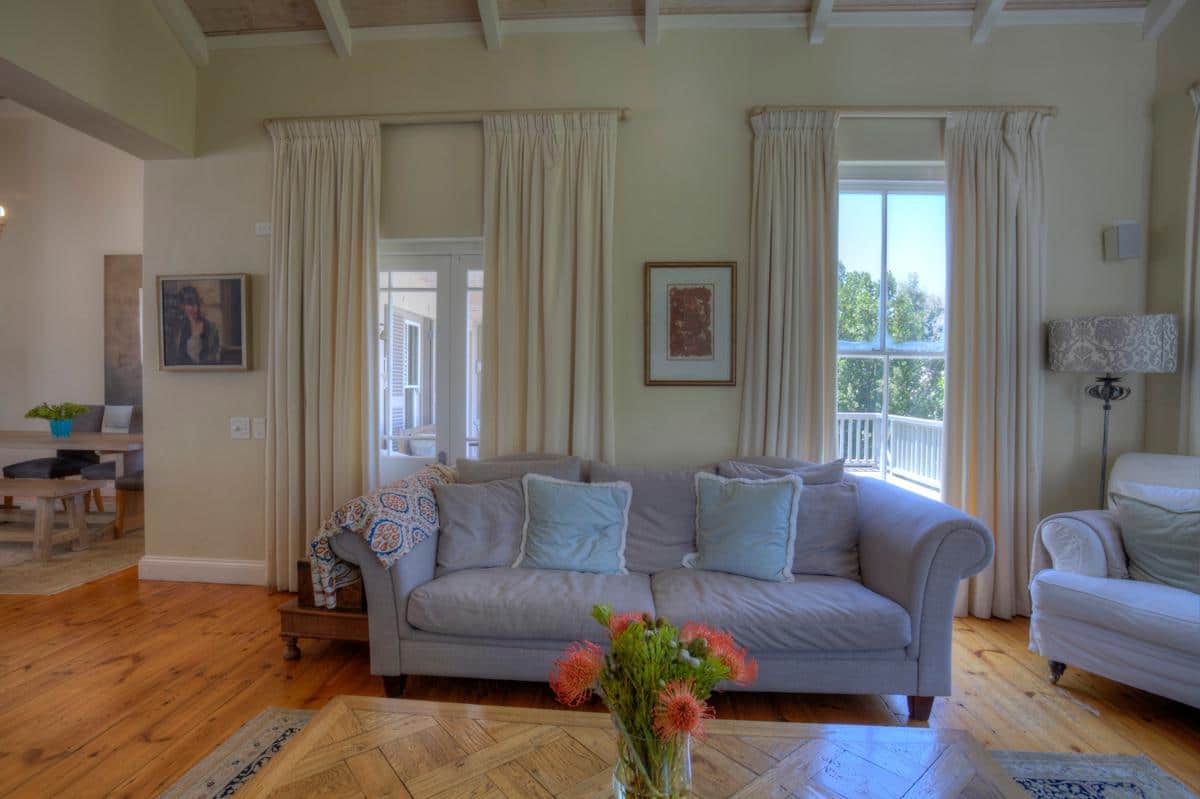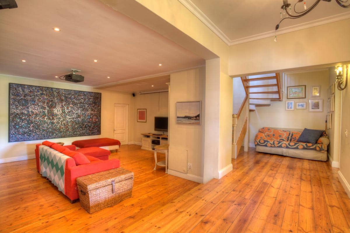 The Danning residence is a modern house in the City Bowl with spectacular views. There is a poolside patio and entertainment area with views of the mountain. There is also a wooden deck to dine on, with views of the harbour and city. There is a ground floor enclosed garden.